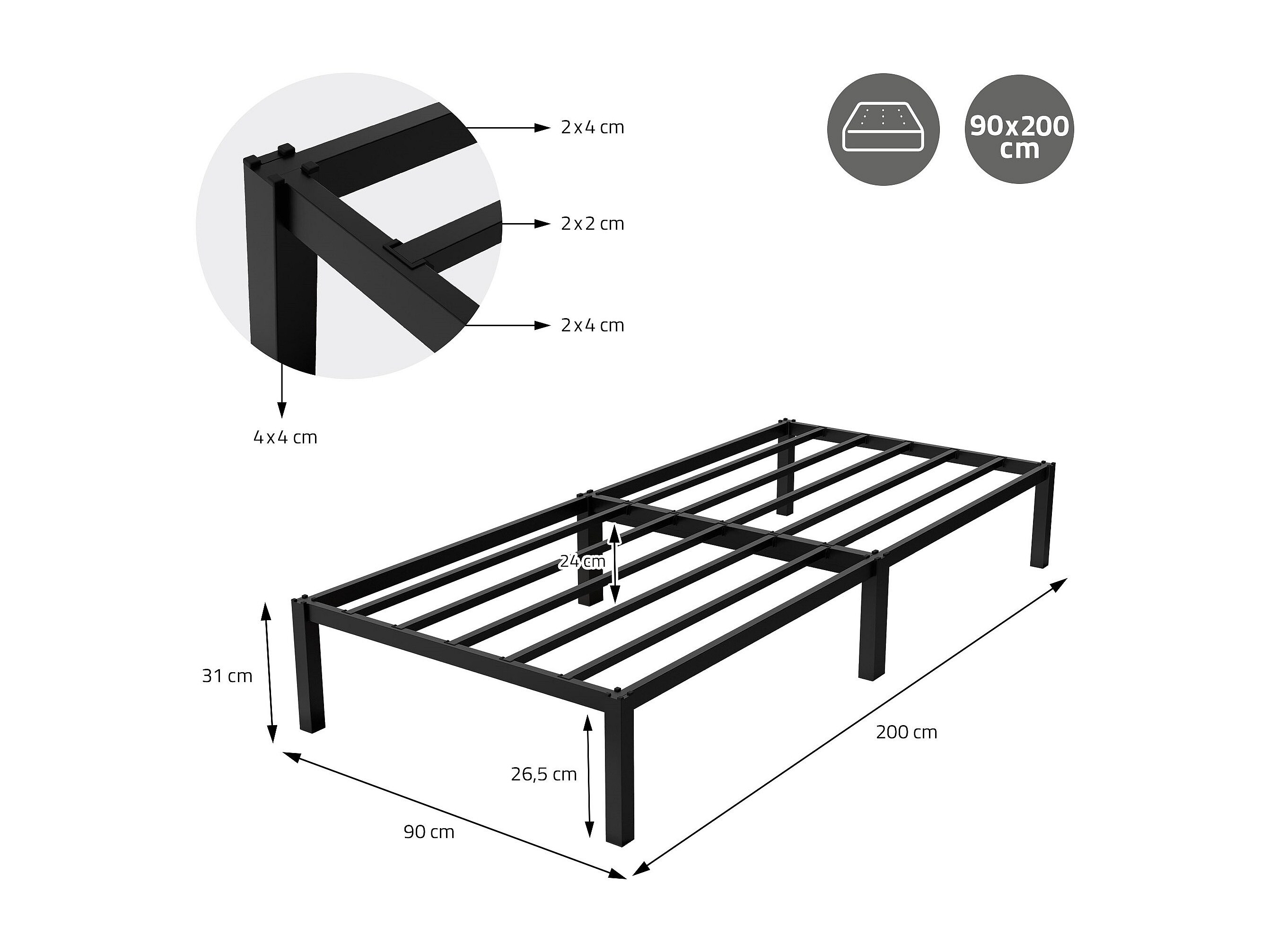 Letto singolo in metallo telaio in acciaio nero con rete a doghe 90 x 200 cm