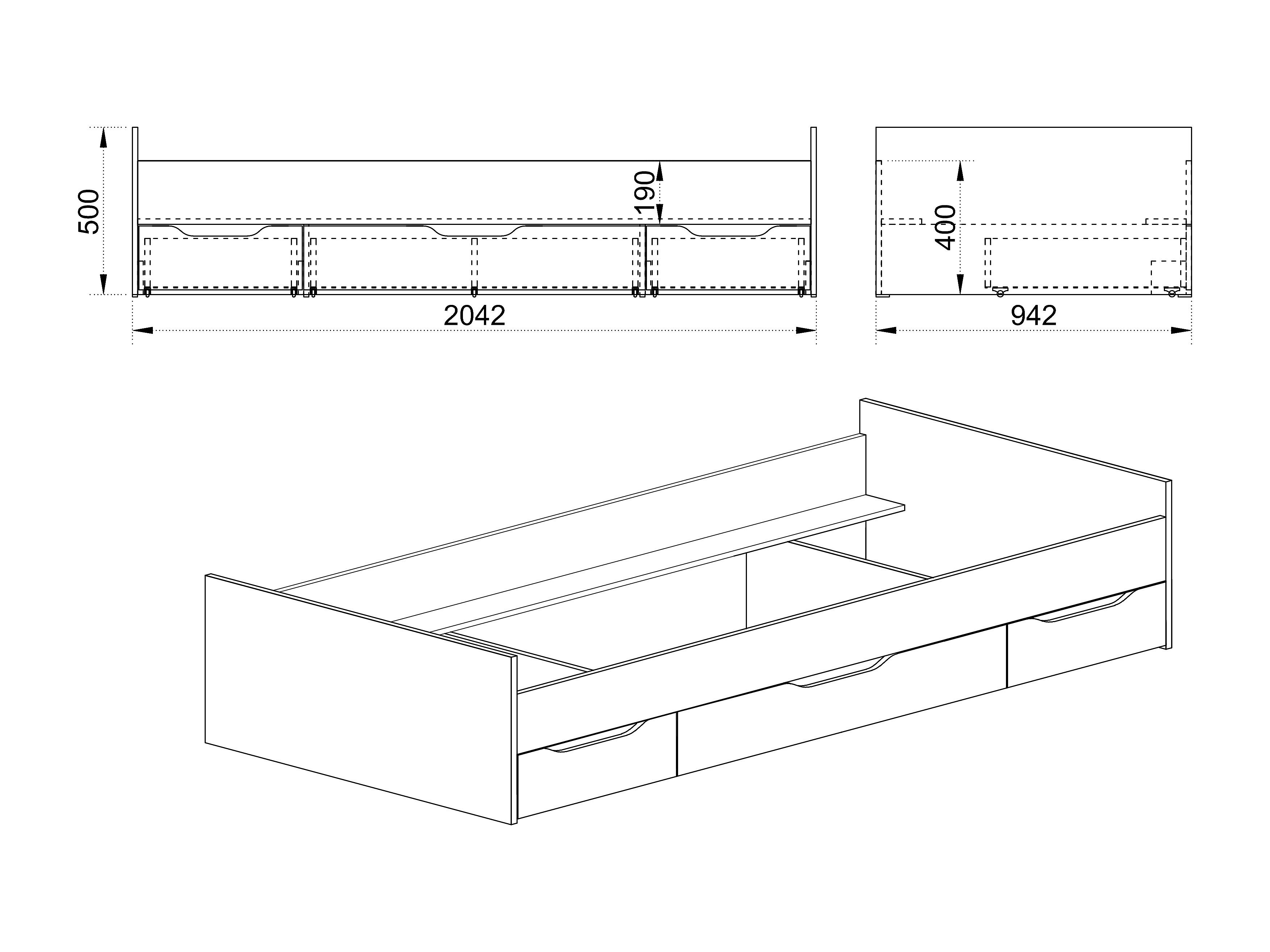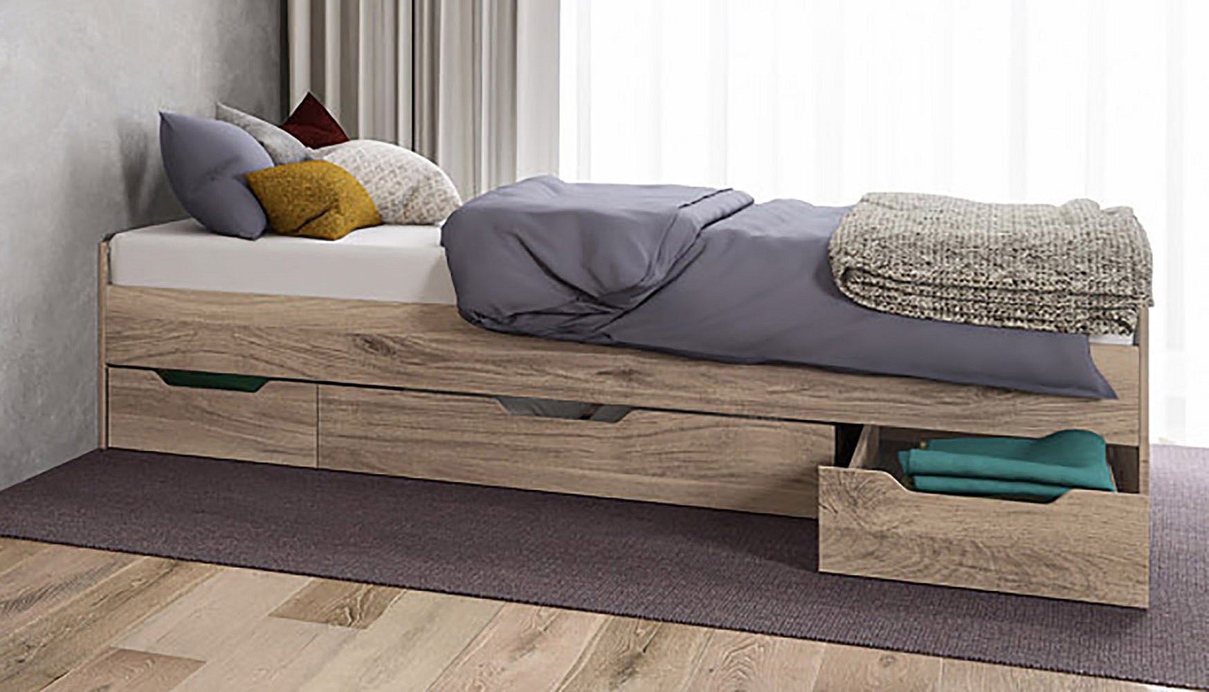 Letto singolo moderno con tre cassetti design moderno 90x200 rovere chiaro LI36