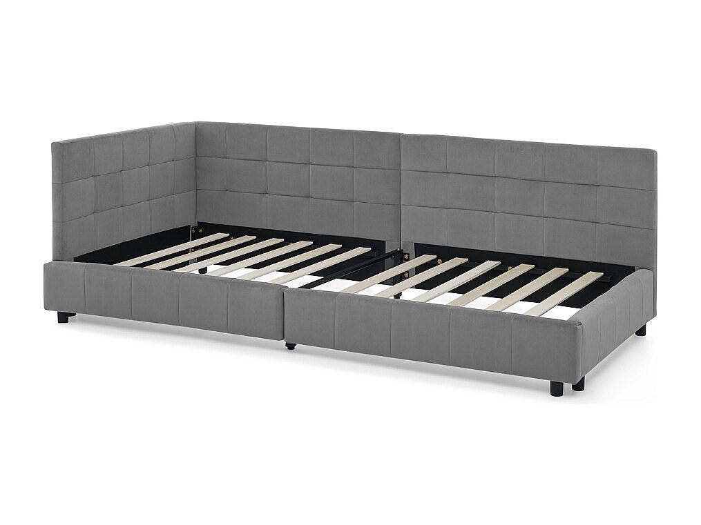 Letto singolo per bambini 90x200cm - Letto imbottito in tessuto Teddy con base e schienale e braccioli, divano letto grigio