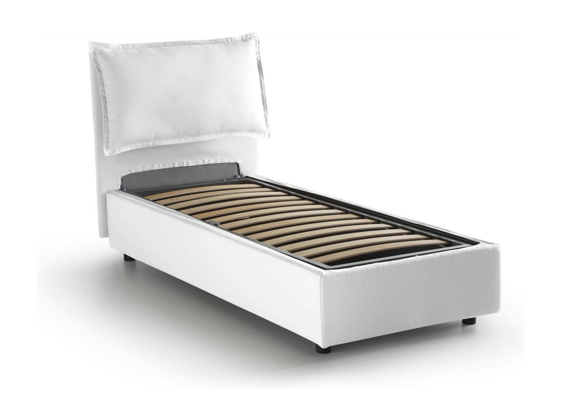 Letto singolo Serena, Letto contenitore con rivestimento in ecopelle, 100% Made in Italy, Apertura frontale, adatto per materasso Cm 90x190, Bianco