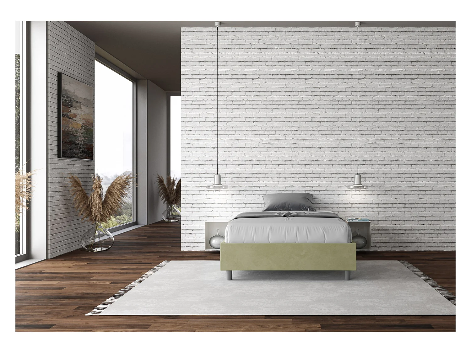 Letto Sommier contenitore imbottito 140x200 microfibra tè verde Azelia