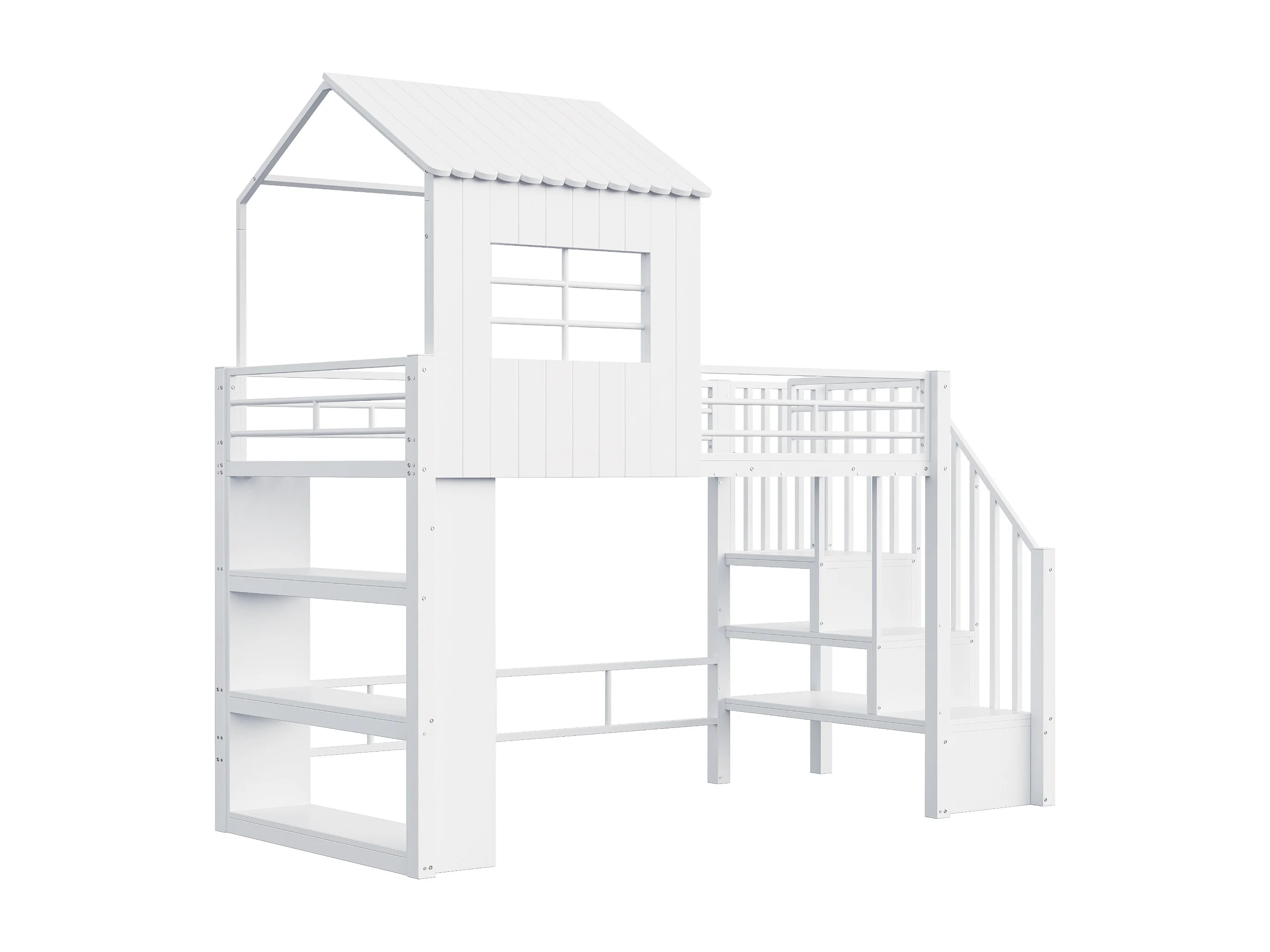 Letto soppalcato 90x200 cm - con barriere di sicurezza - con ripiani di riporre - con scala di sicurezza - bianco​ (materasso non incluso)