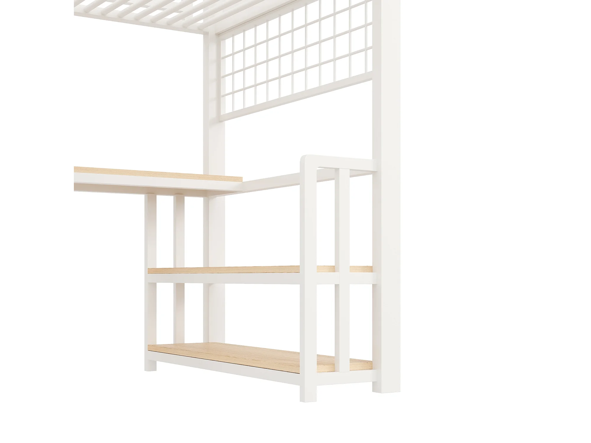 Letto soppalcato 90x200 cm - con ripiani di riporre e scrivania - luce LED - dotato di 2 porte USB + 1 porta Type-C - bianco​ (materasso non incluso)