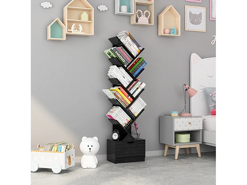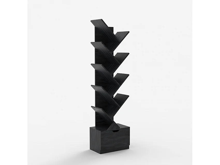 Libreria 10 scaffali design moderno cassetto soggiorno ufficio Treebook 150 - Nero