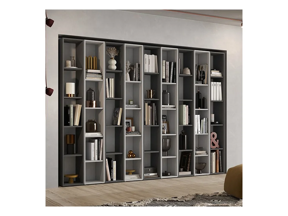 Libreria 252x186 cm con 45 vani grigia LBL2