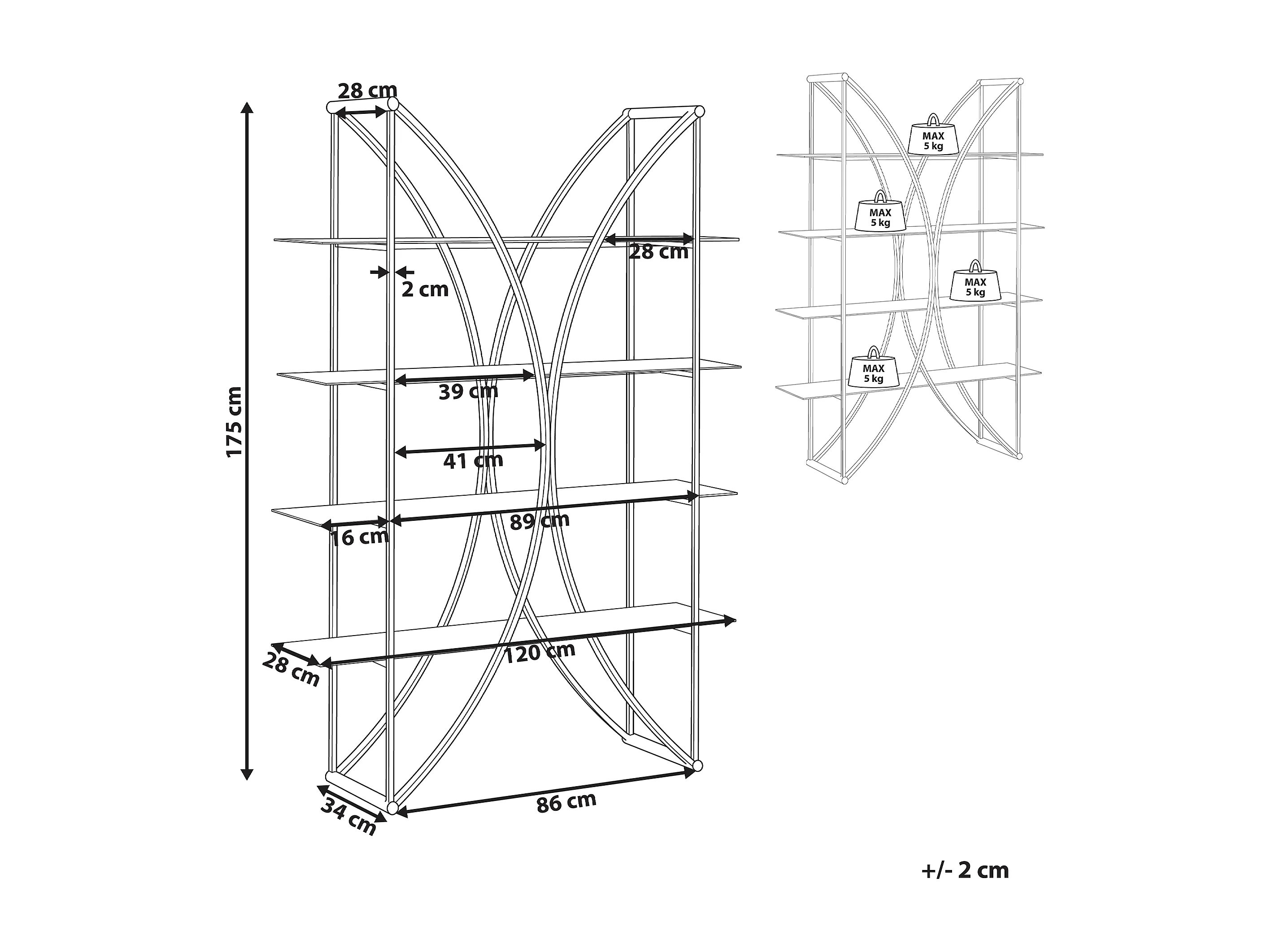 Libreria a 4 ripiani HOLLOW Metallo 175 cm Oro