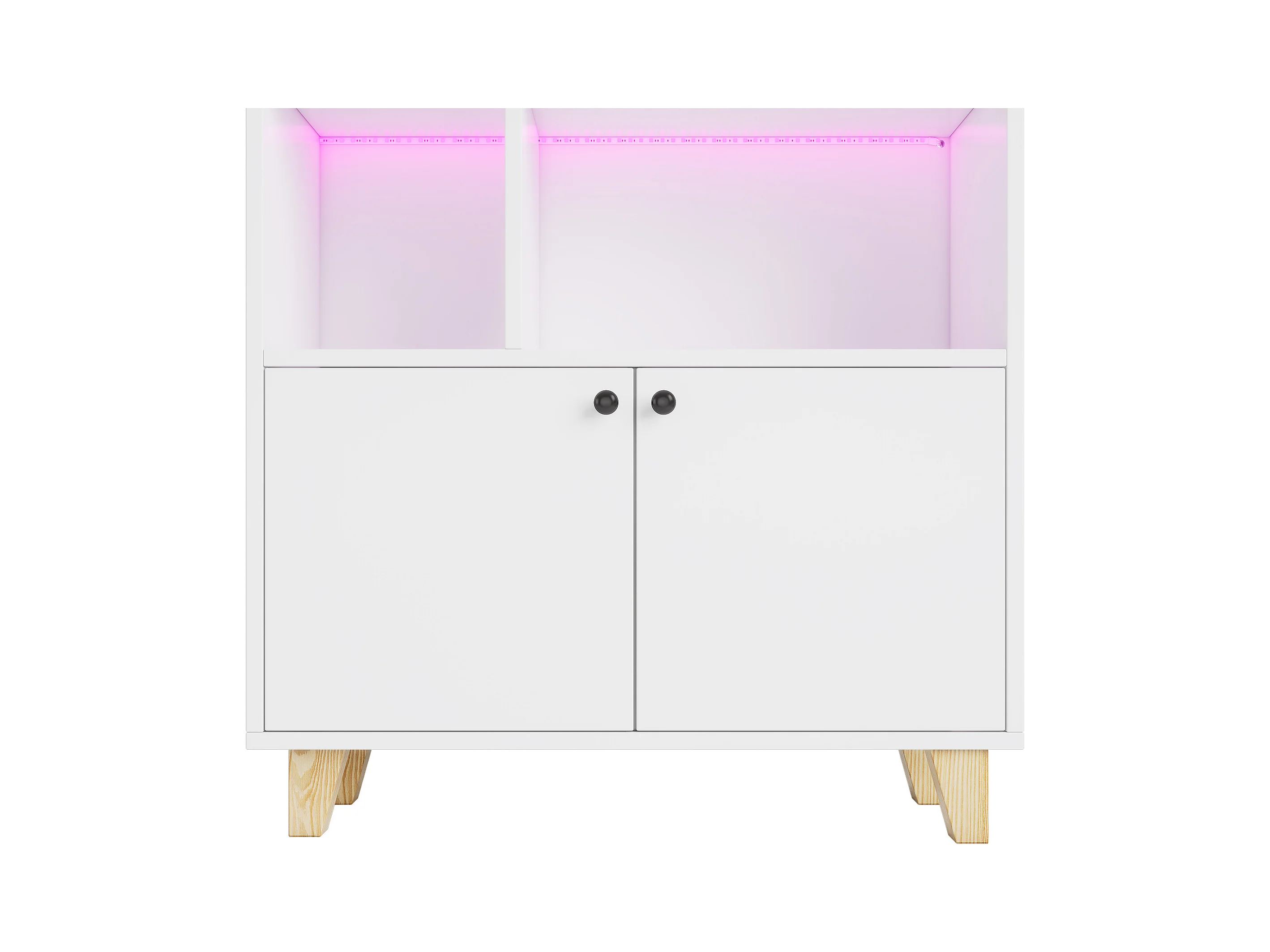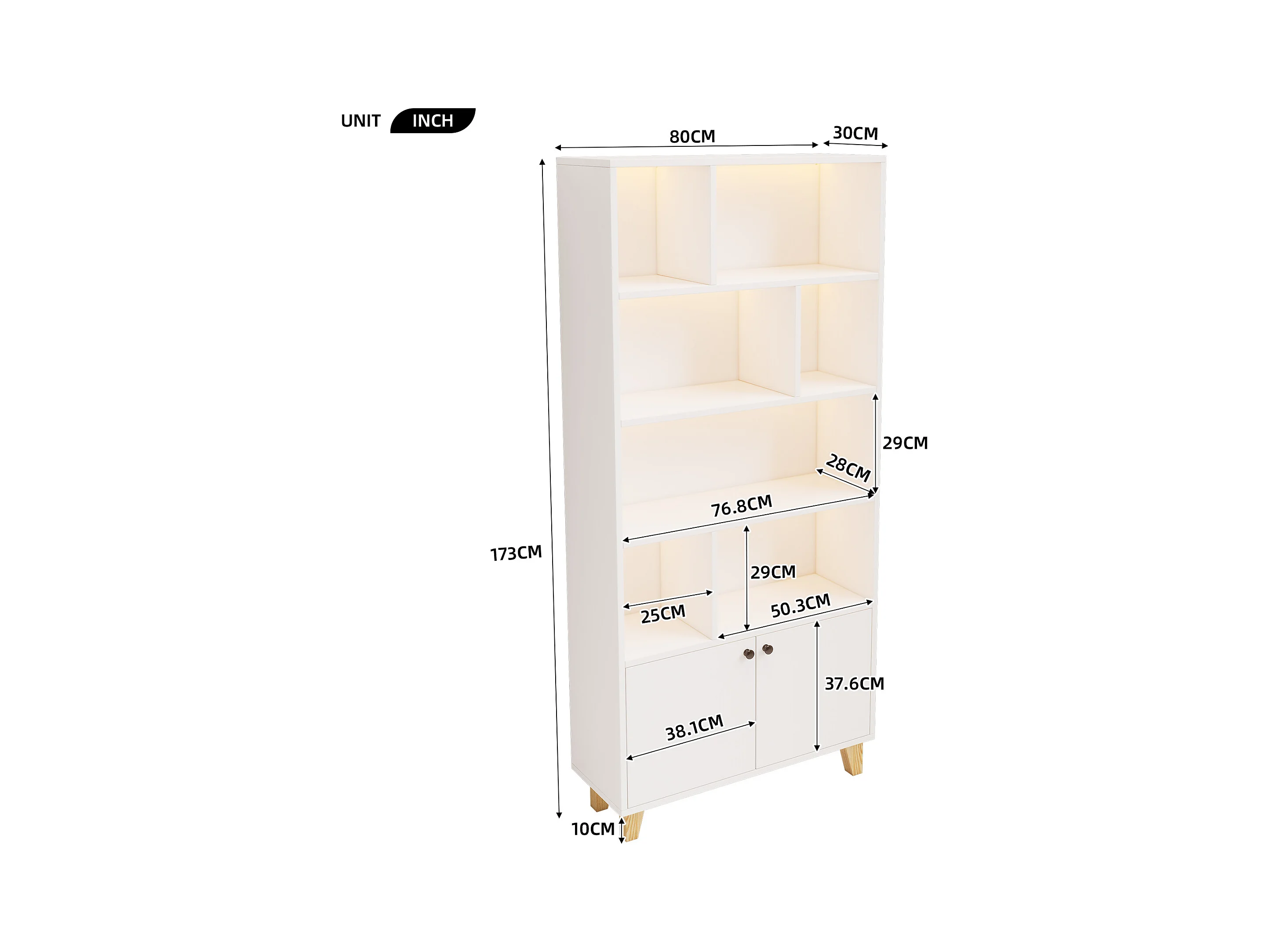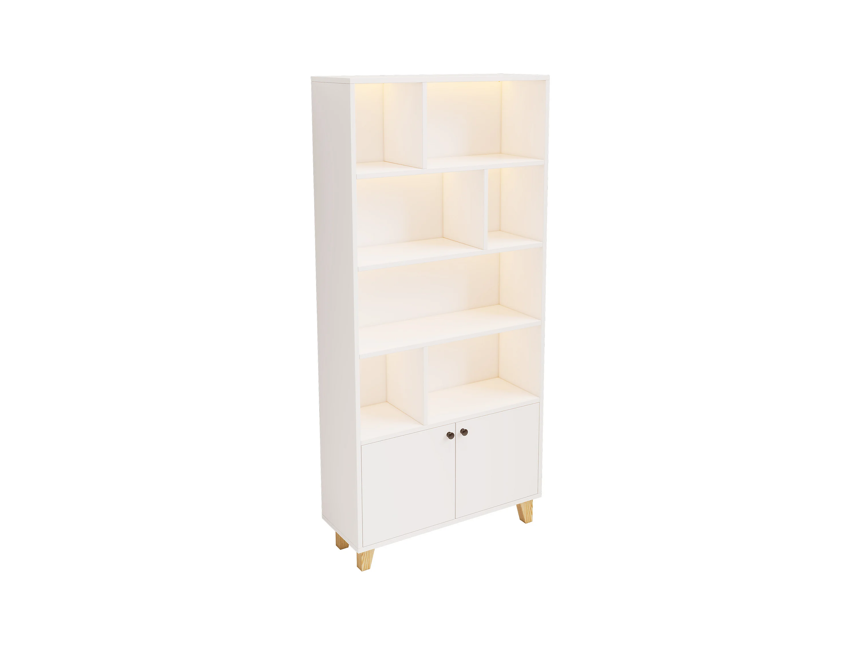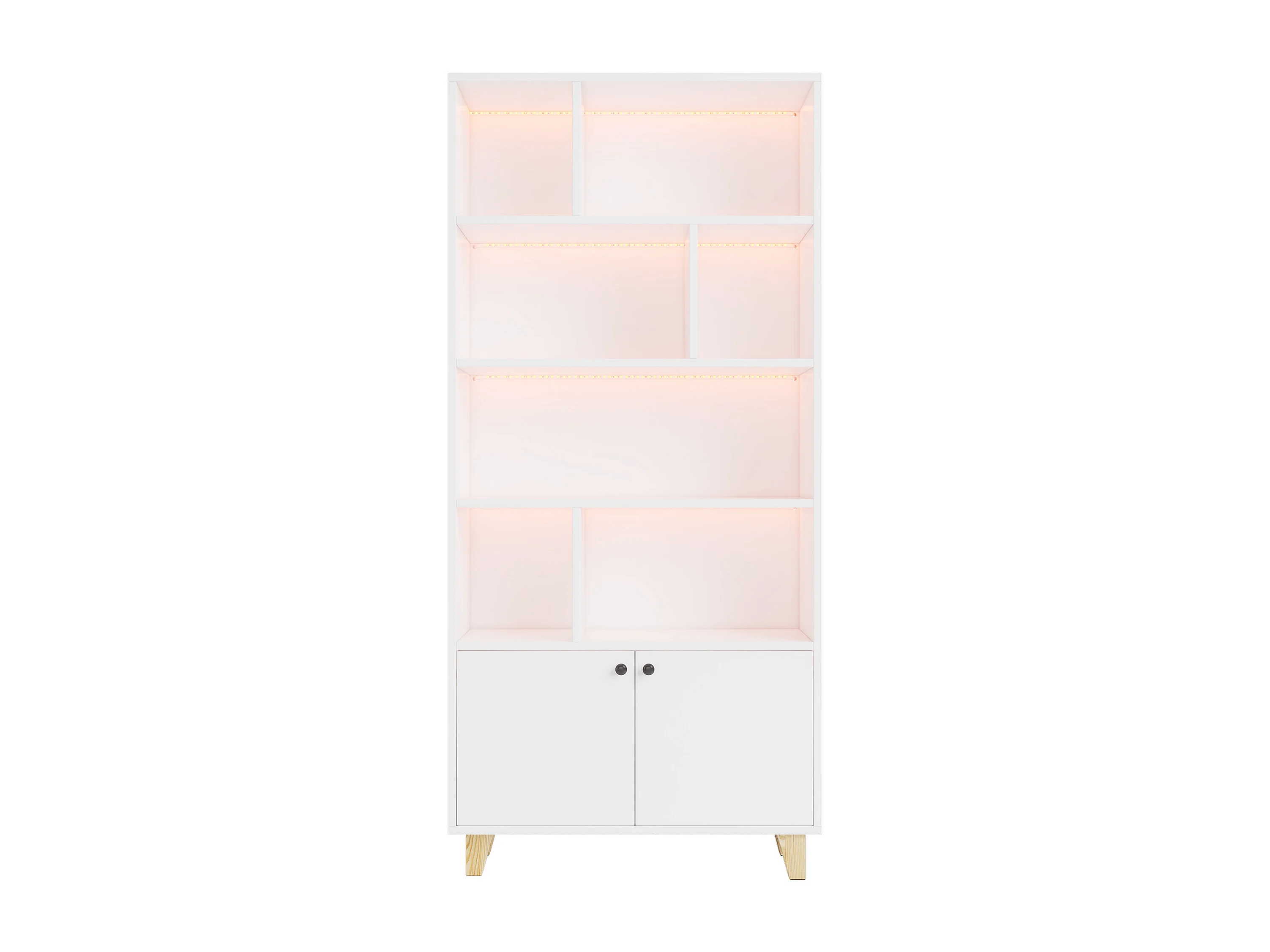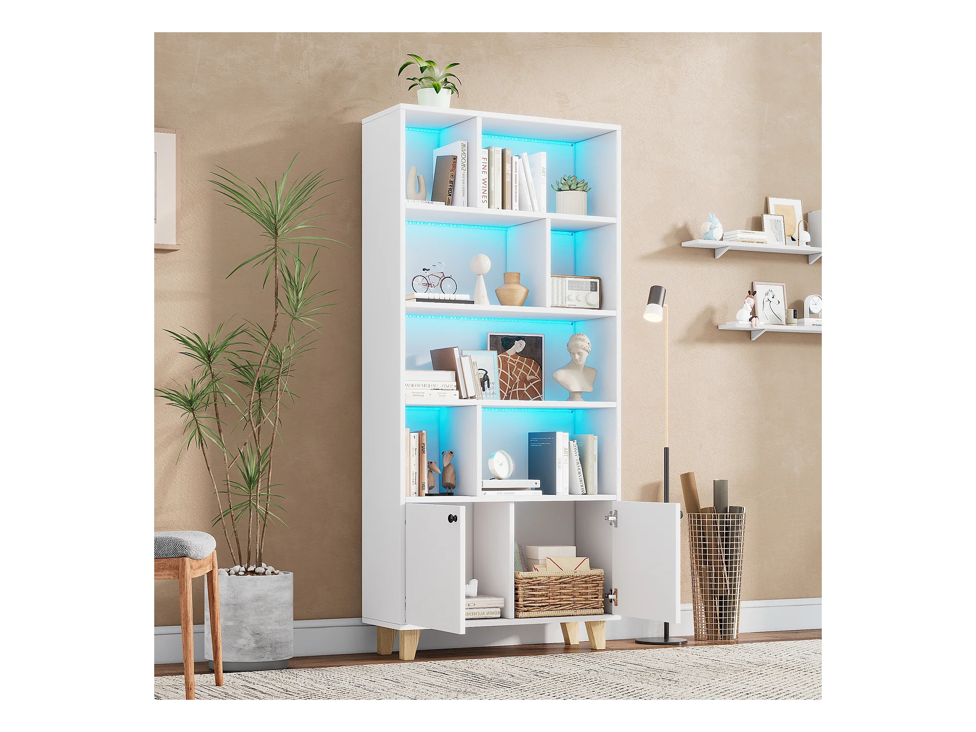 Libreria 80×30×173 cm - illuminazione LED a cambio colore - 2 ante - scomparti di riporo - bianco