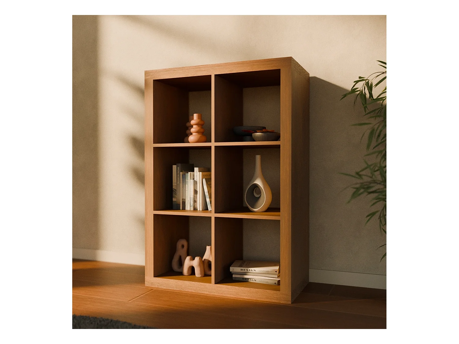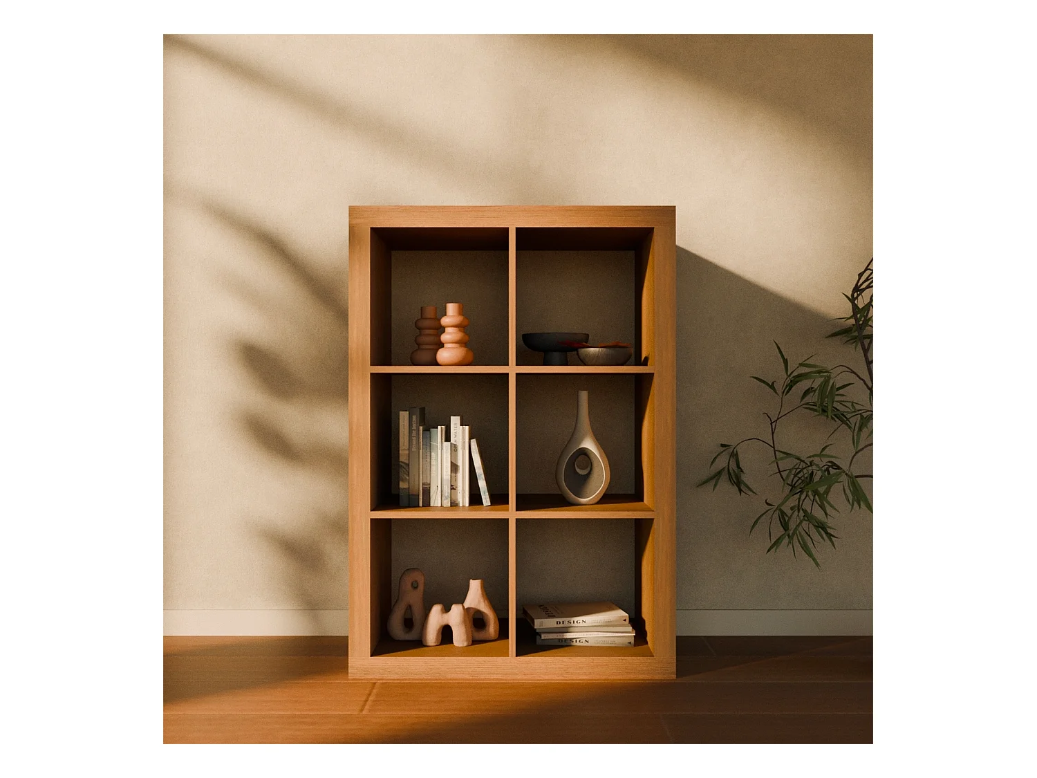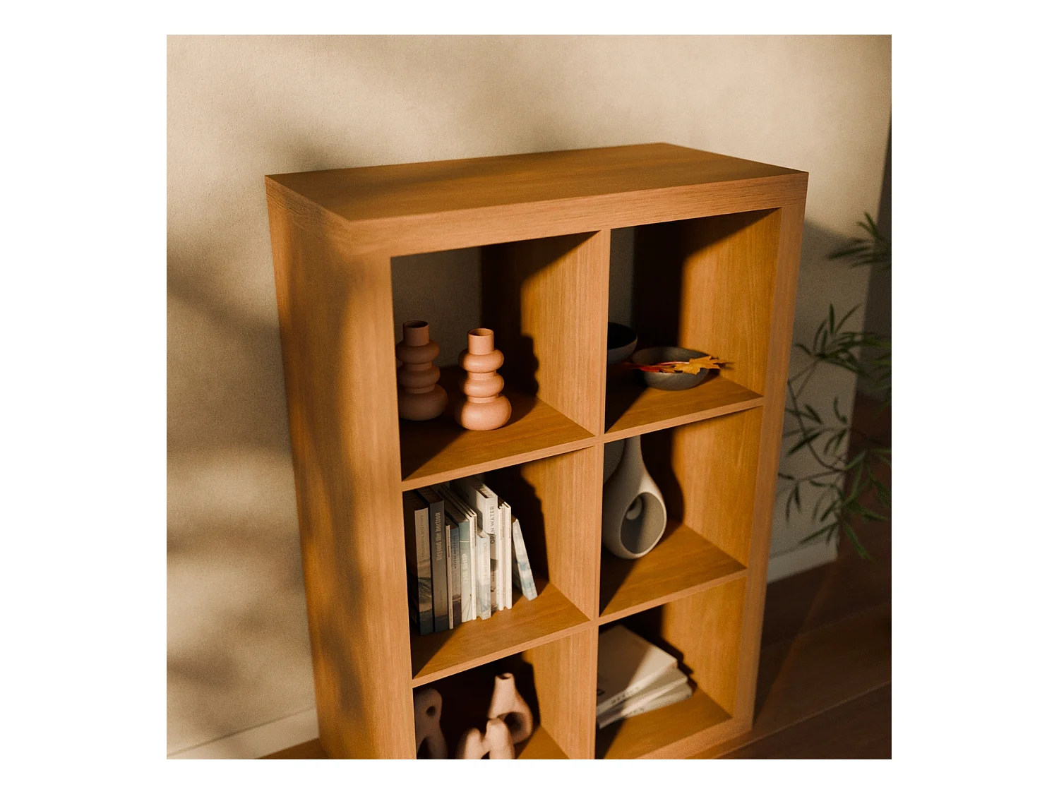 Libreria cubica, 2 livelli, 4 vani, albero di mango