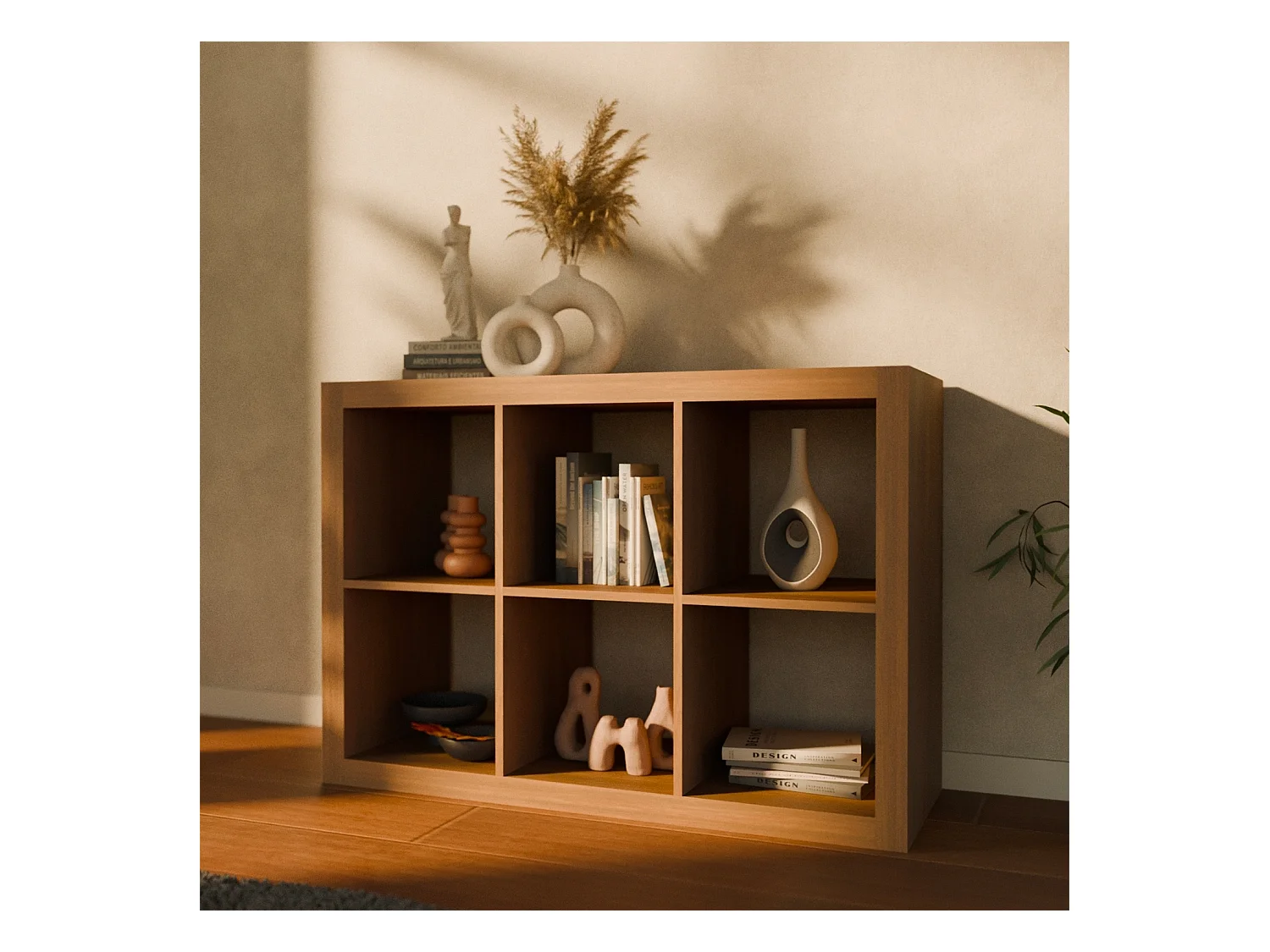 Libreria a 2 livelli con 6 scomparti, albero di mango