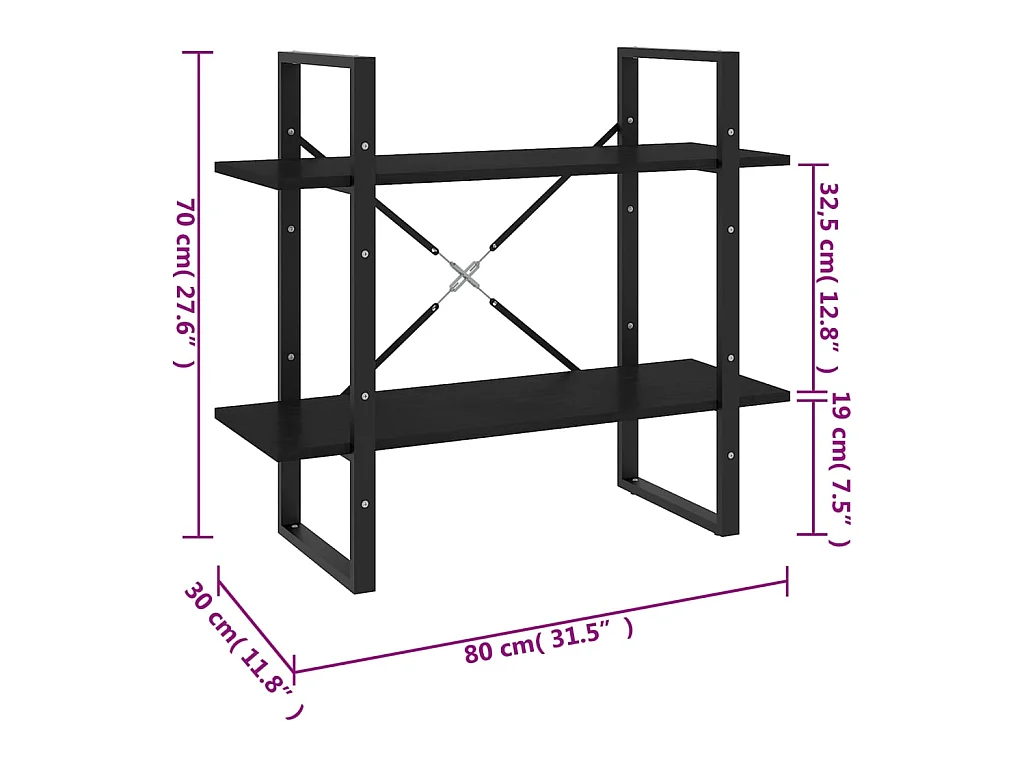 Libreria a 2 ripiani Nera 80x30x70 cm Truciolare
