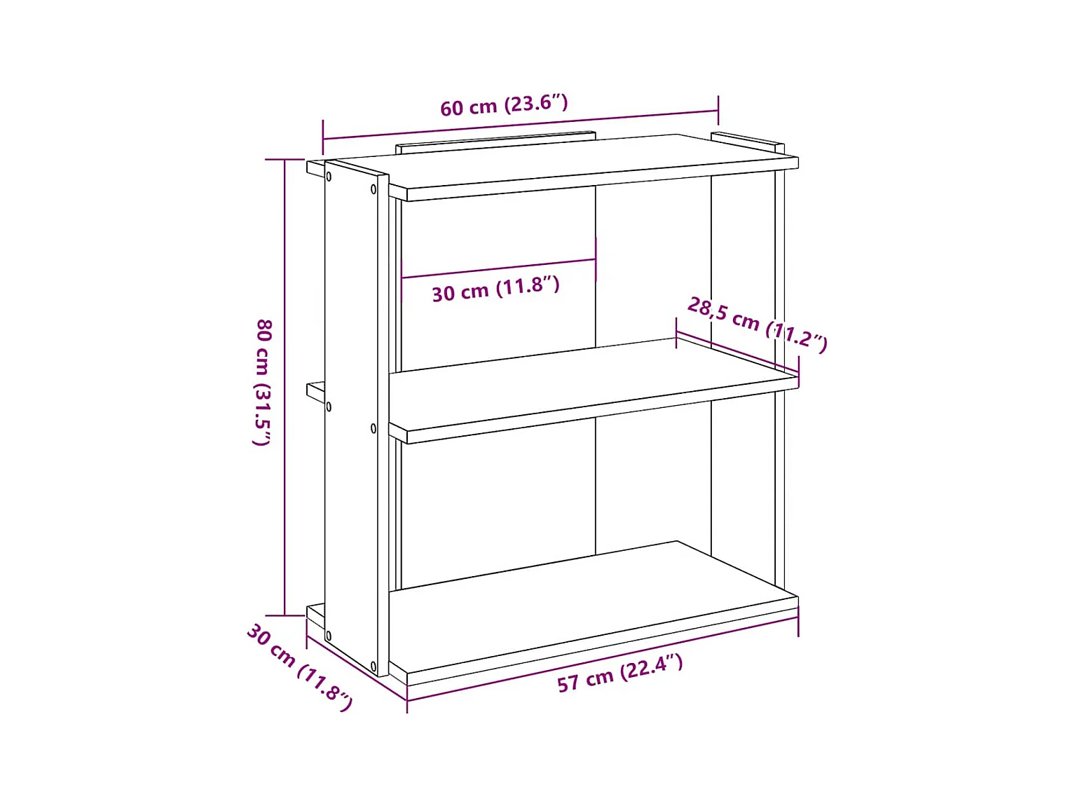 Libreria a 3 ripiani Sonoma Grey 60x30x80cm in legno ingegnerizzato