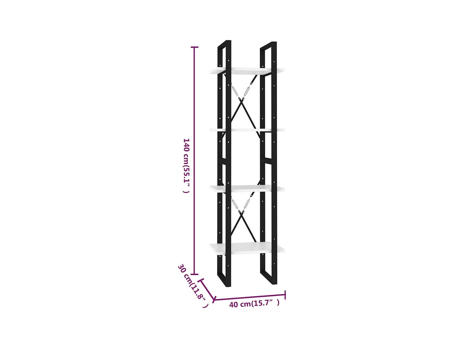 Libreria a 4 ripiani Bianca 40x30x140 cm in truciolare