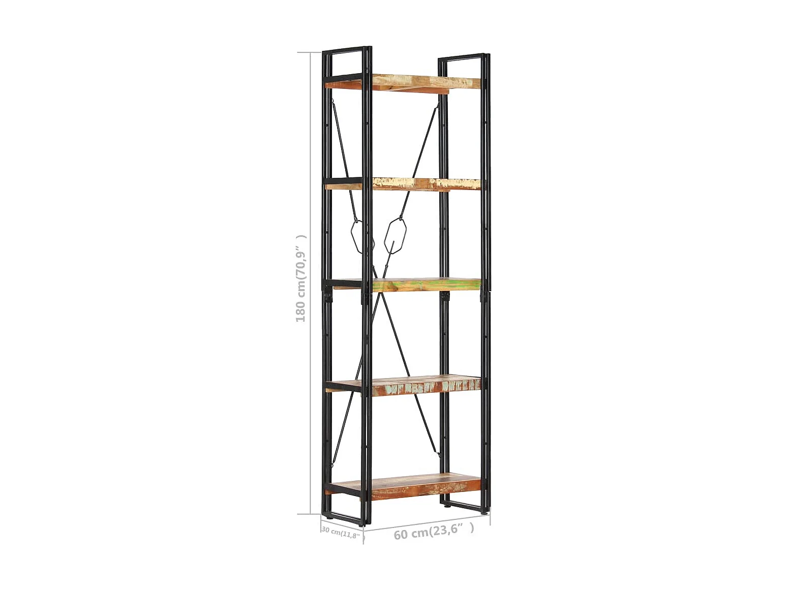 Libreria a 5 Ripiani 60x30x180 cm in Massello di Recupero