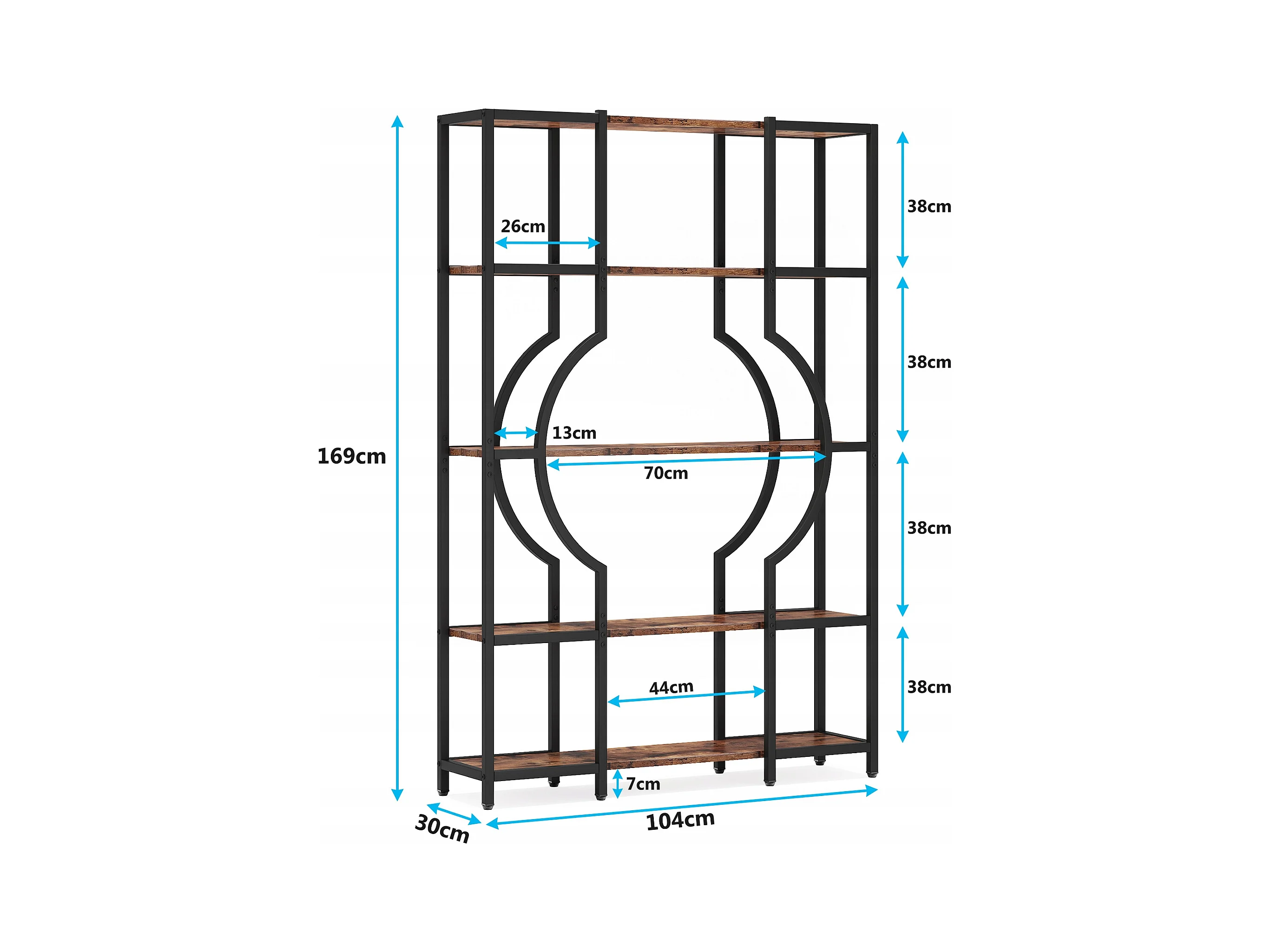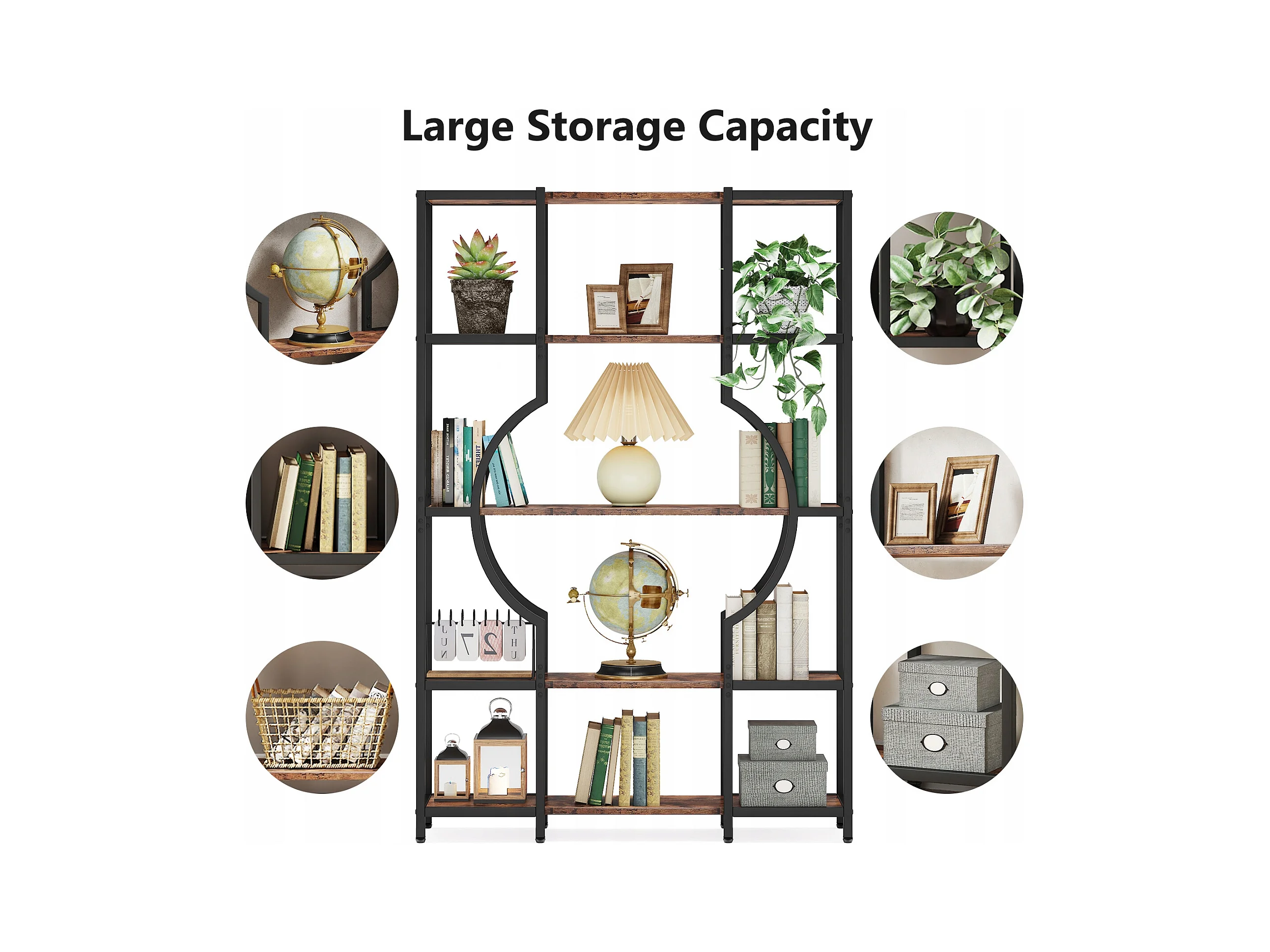 Libreria industriale a 5 ripiani, libreria alta indipendente con 9 ripiani portaoggetti aperti per soggiorno, camera da letto, ufficio domestico
