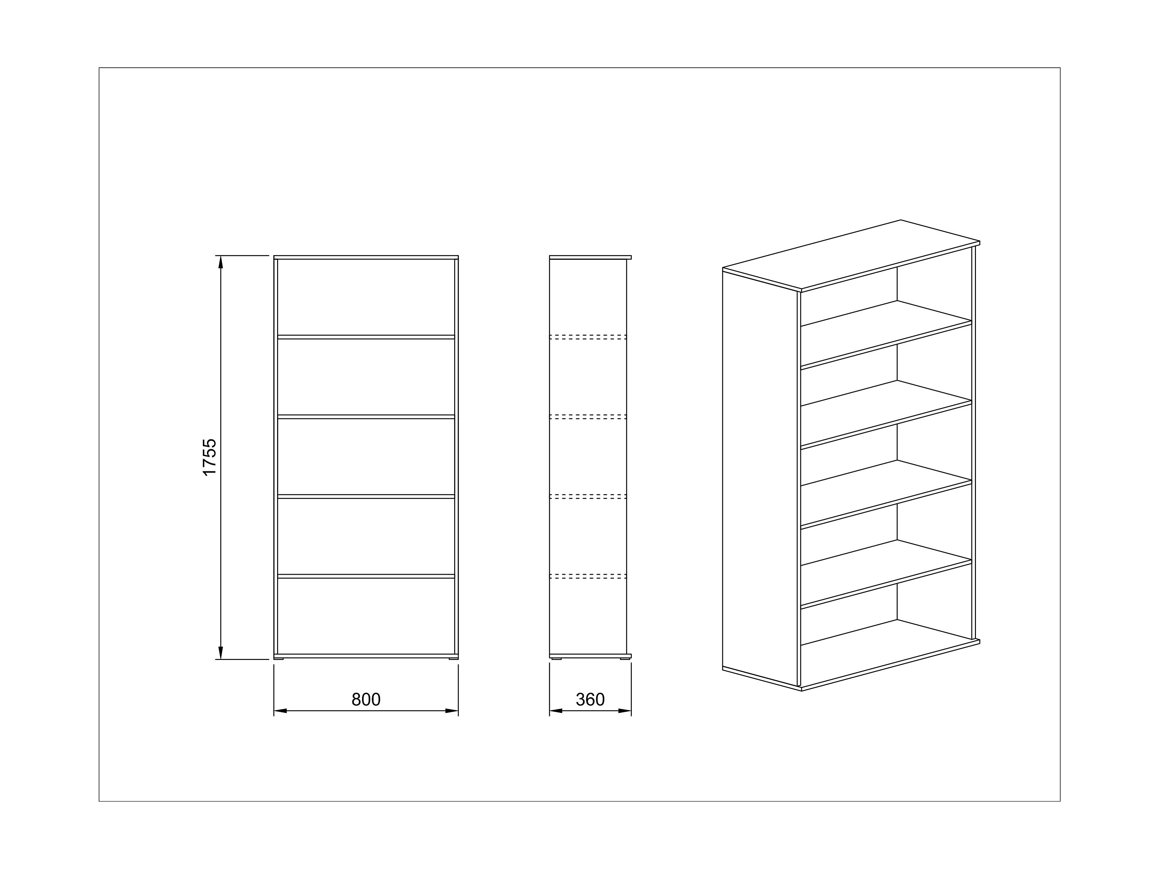 libreria da ufficio moderna alta e stretta con ripiani LUI2 40x106 rovere e bianco