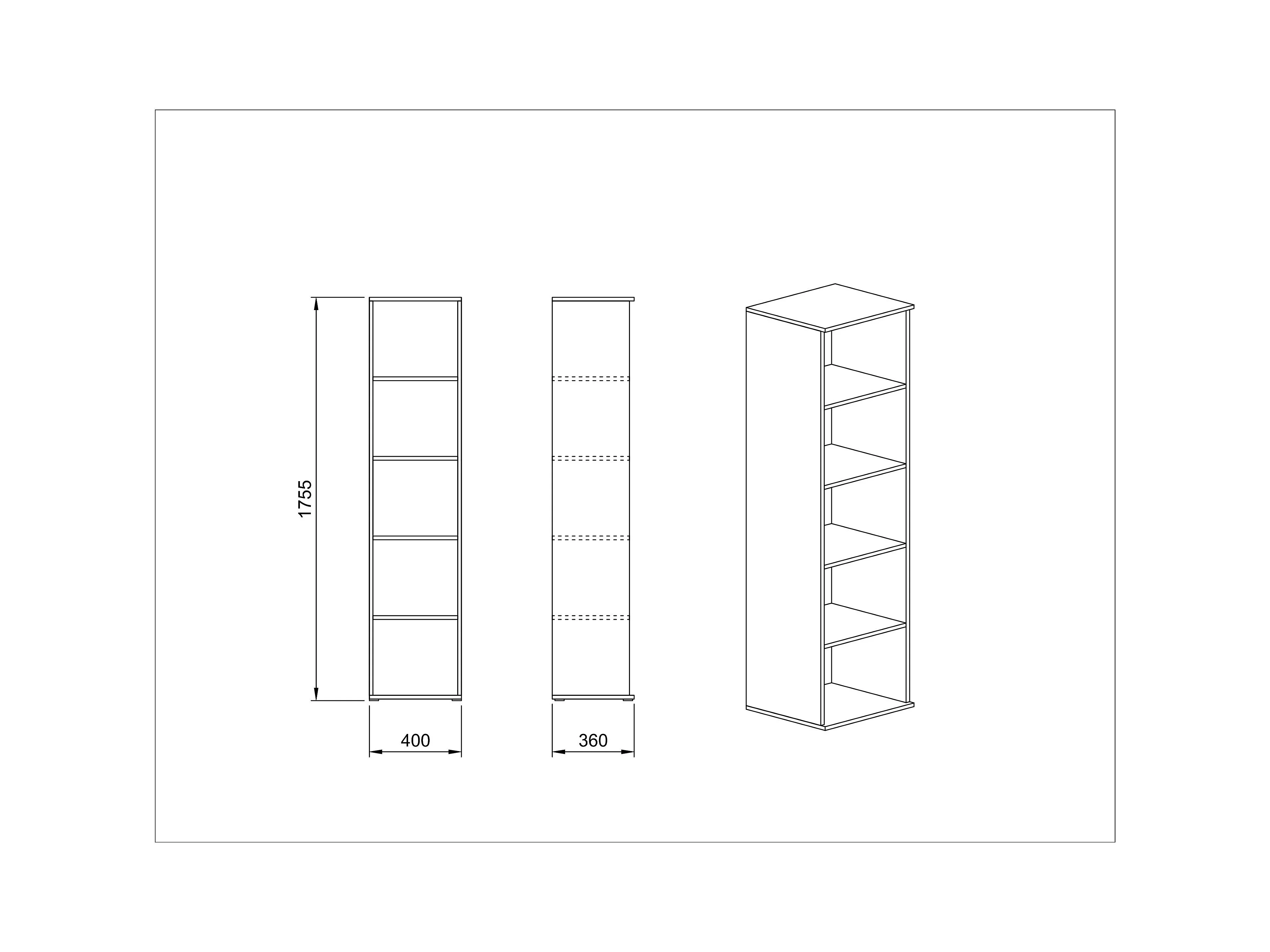 libreria da ufficio moderna alta e stretta con ripiani LUI2 40x106 rovere e bianco