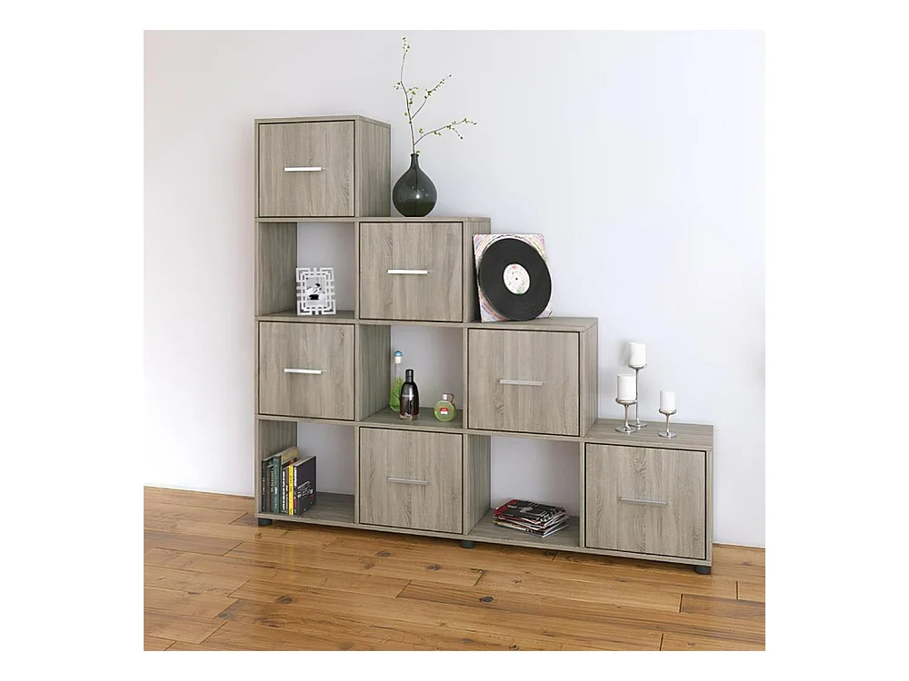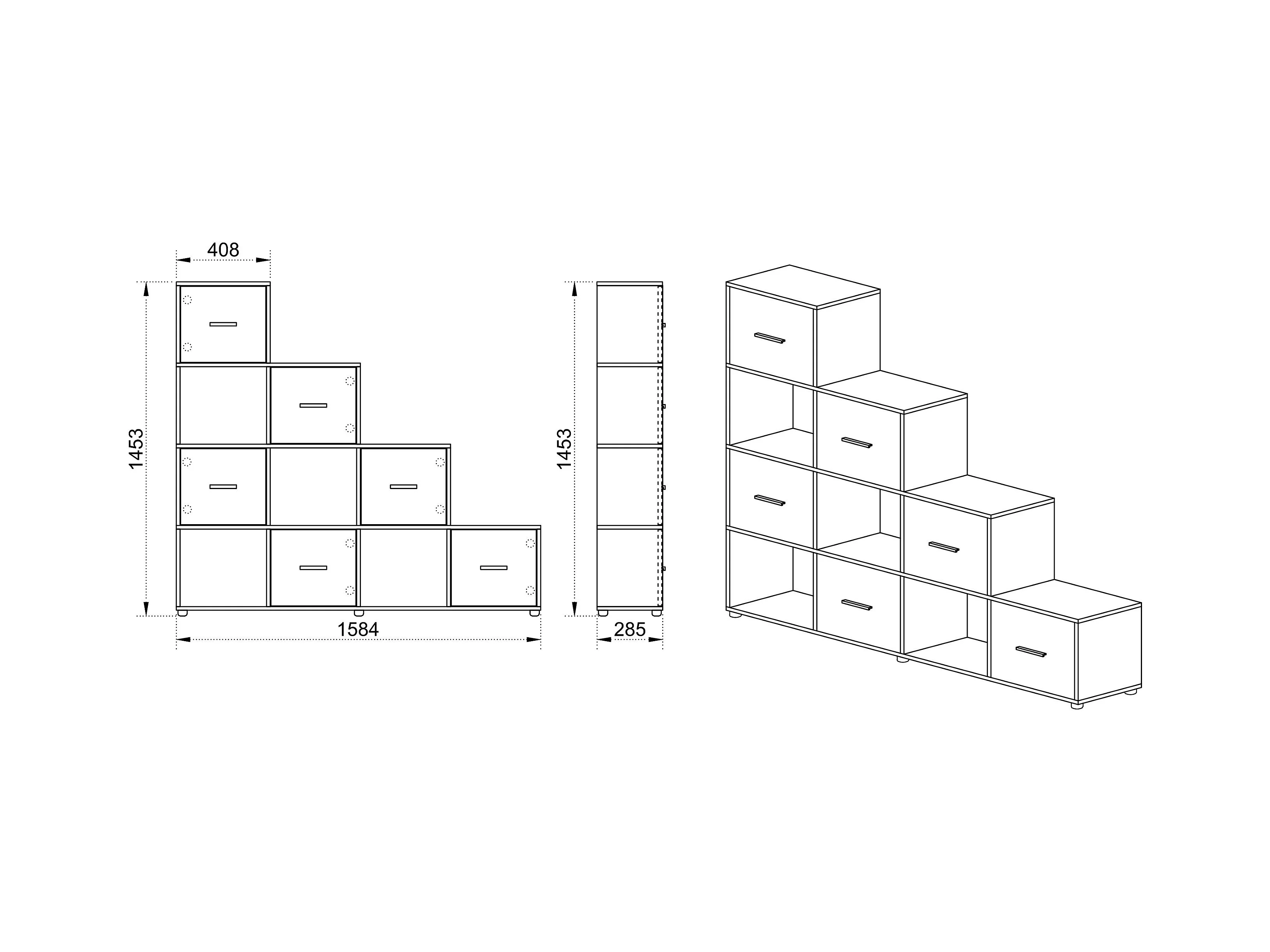 libreria a giorno per salotto con sei cassetti LB1 158,4x145,3 rovere scuro