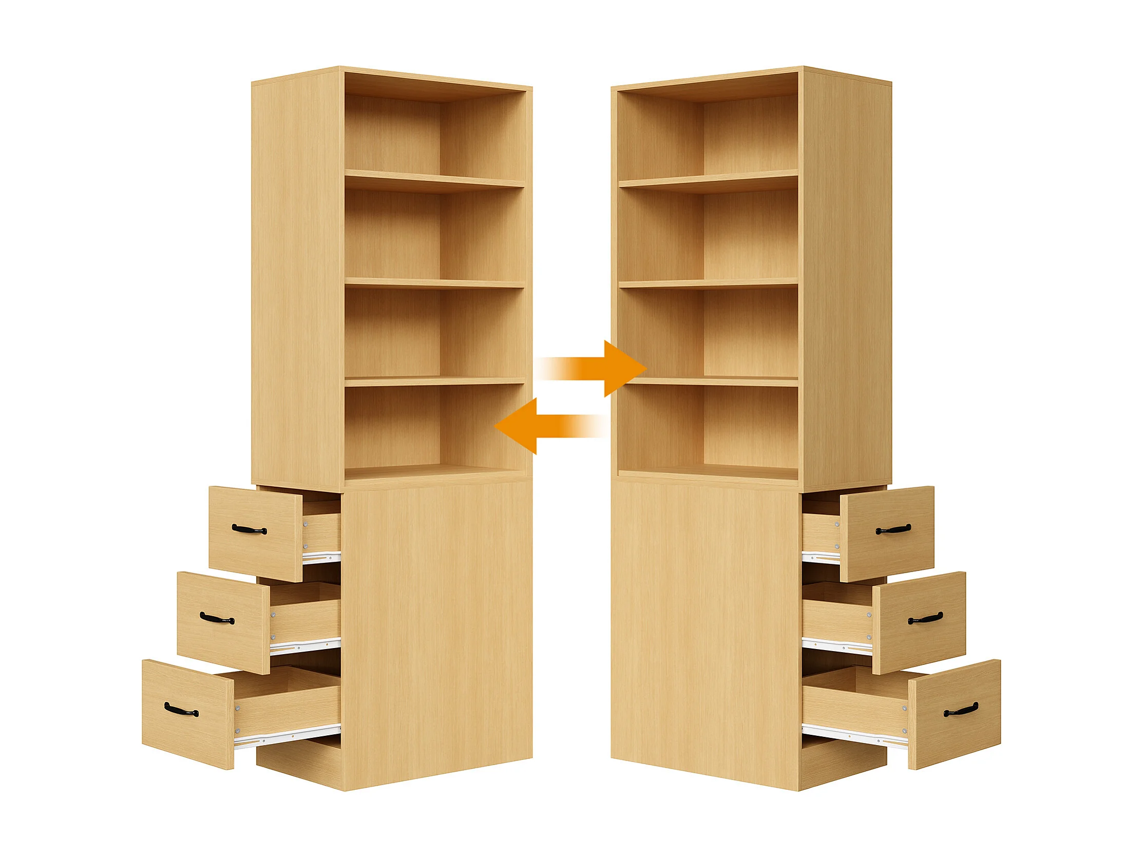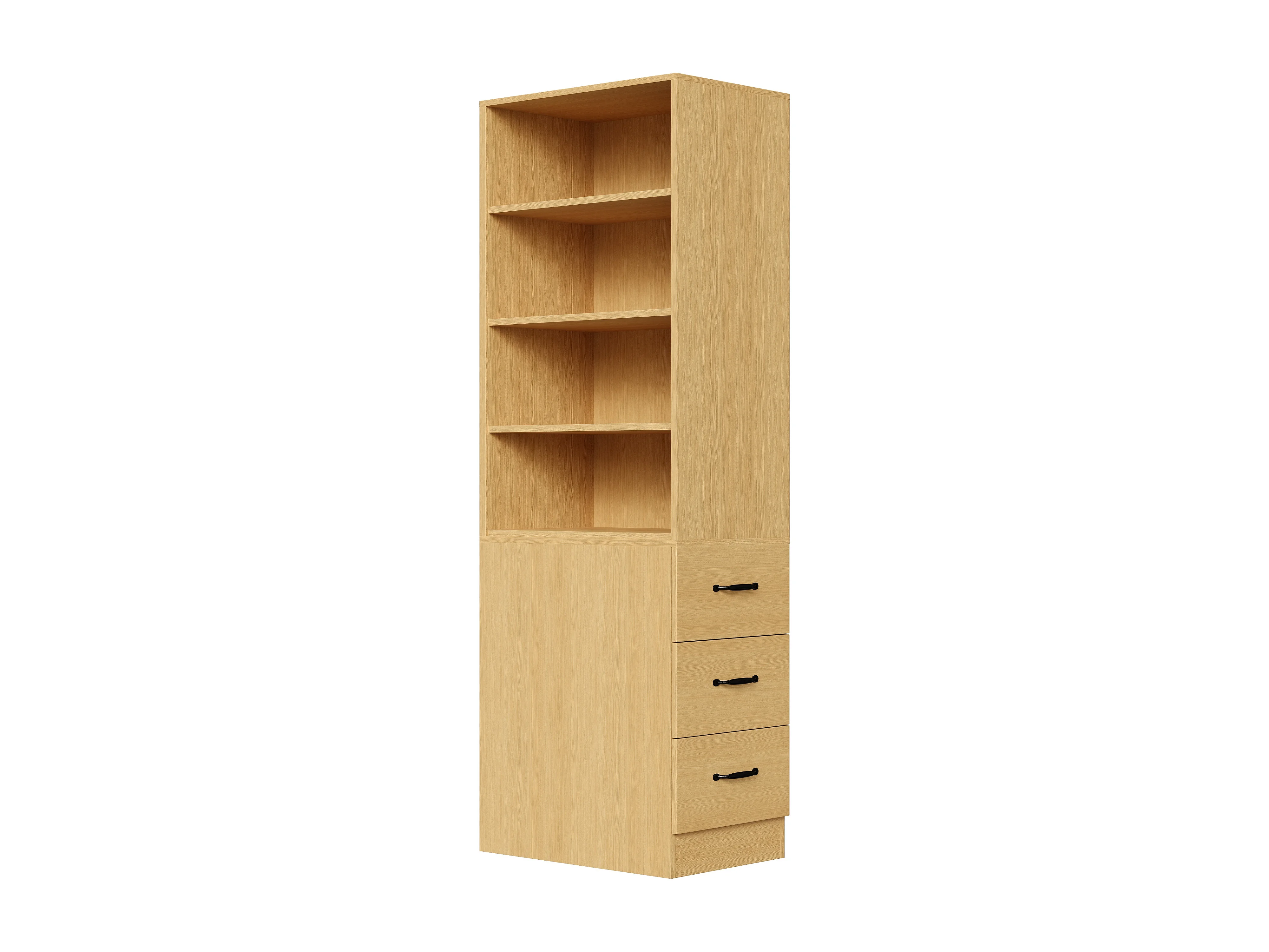 Libreria alta 180 cm - con 3 cassetti laterali - Ripiani regolabili - Reversibile sinistra/destra - Naturale