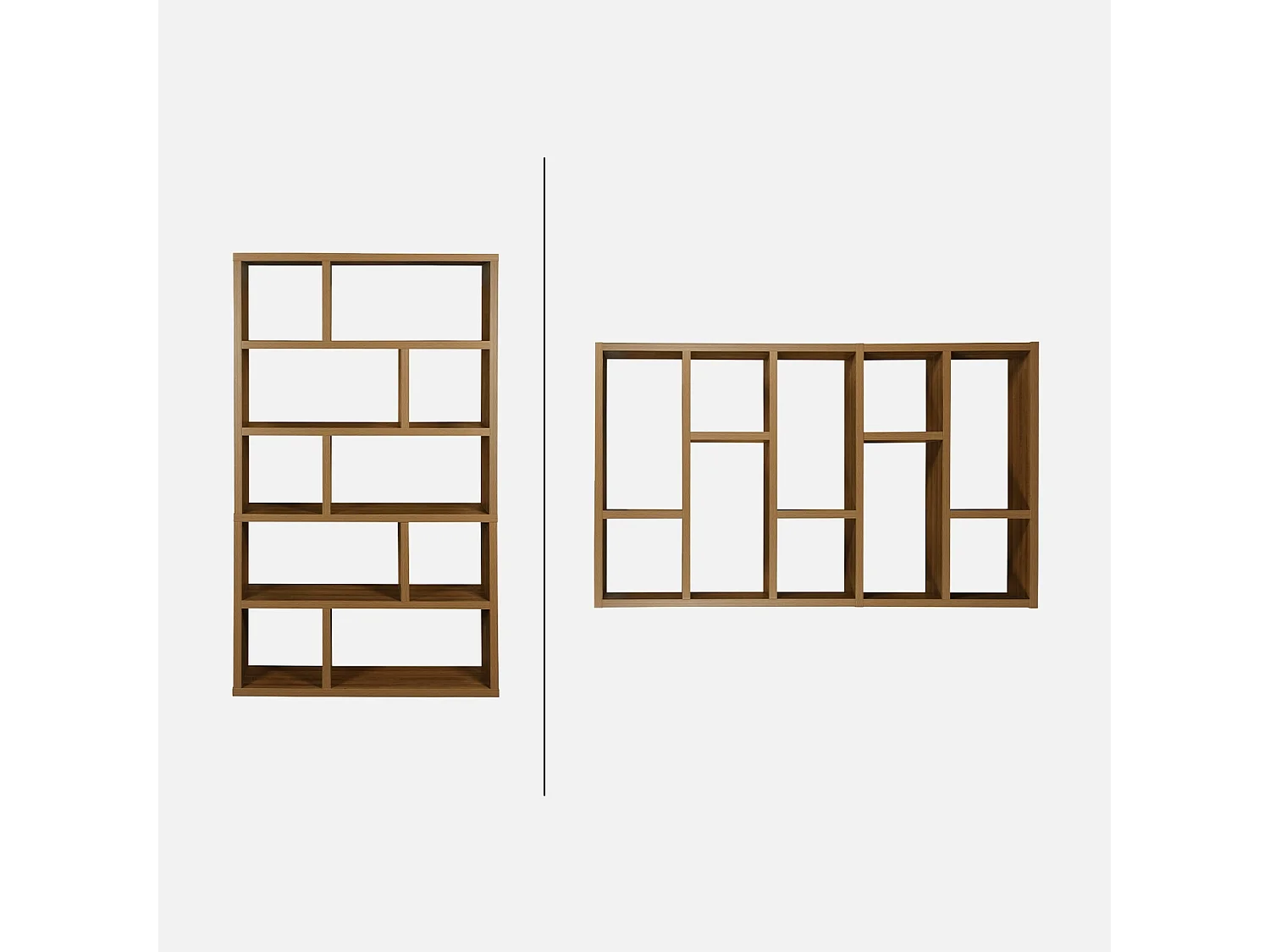 Libreria asimmetrica a 5 livelli con 10 scomparti, albero di mango