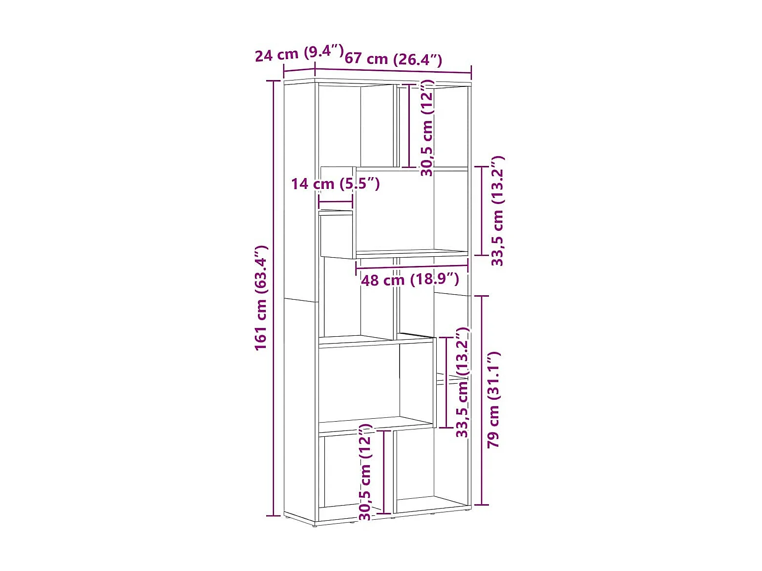 Libreria Bianca 67x24x161 cm in Legno Multistrato