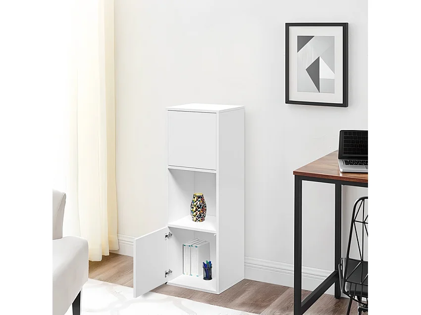 Libreria bianca con 2 ante 3 scaffali per ufficio studio moderna ika 6