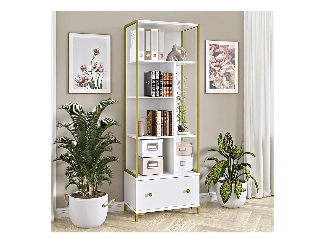 Libreria collezione DOUGLAS con numerosi spazi di conservazione e finiture dorate, 70 x 200 x 42 cm