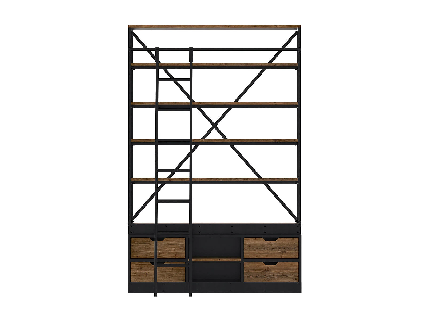 Libreria 160 cm in legno e metallo con scala, 4 cassetti - Kasi