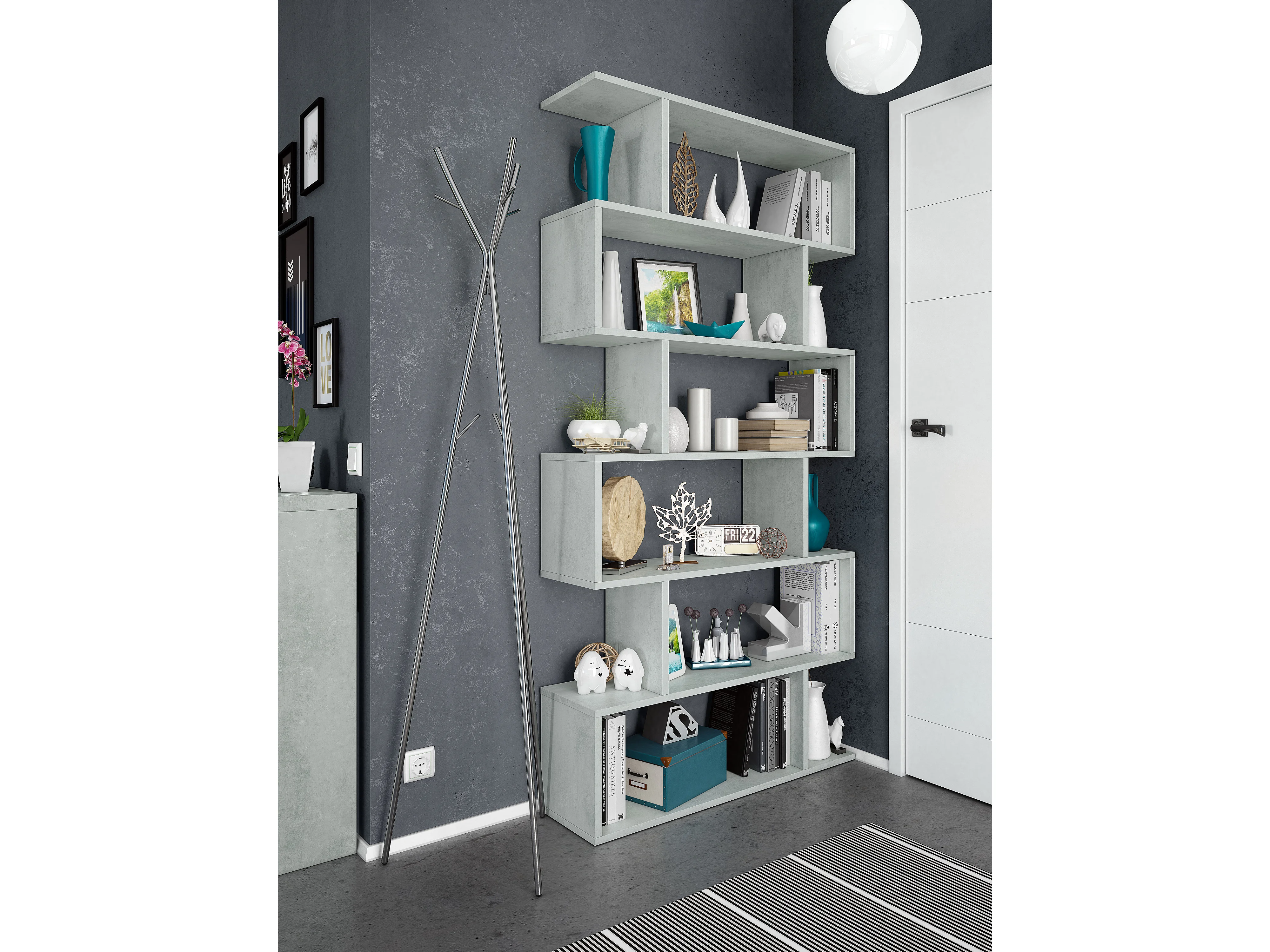 Libreria Design Zig Zag Scaffale Mensola Moderna 6 Vani A Giorni E Ripiani Mobile per Libri per Soggiorno Salotto Camera Studio 143 x 144.9 x 27.9 Cm Grigio Cemento