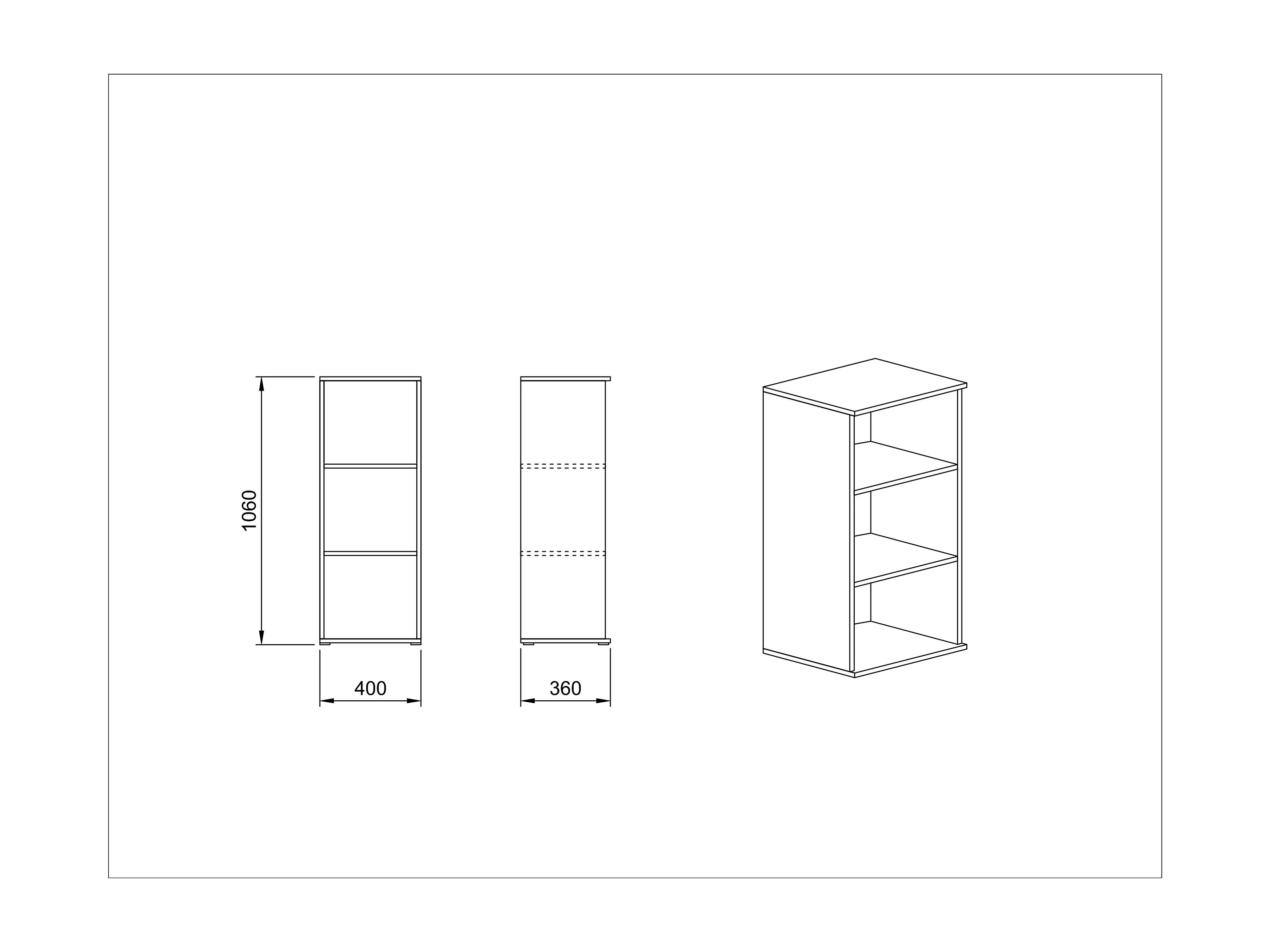 libreria per studio design moderna con tre ripiani LUI3 40x106 rovere e bianco