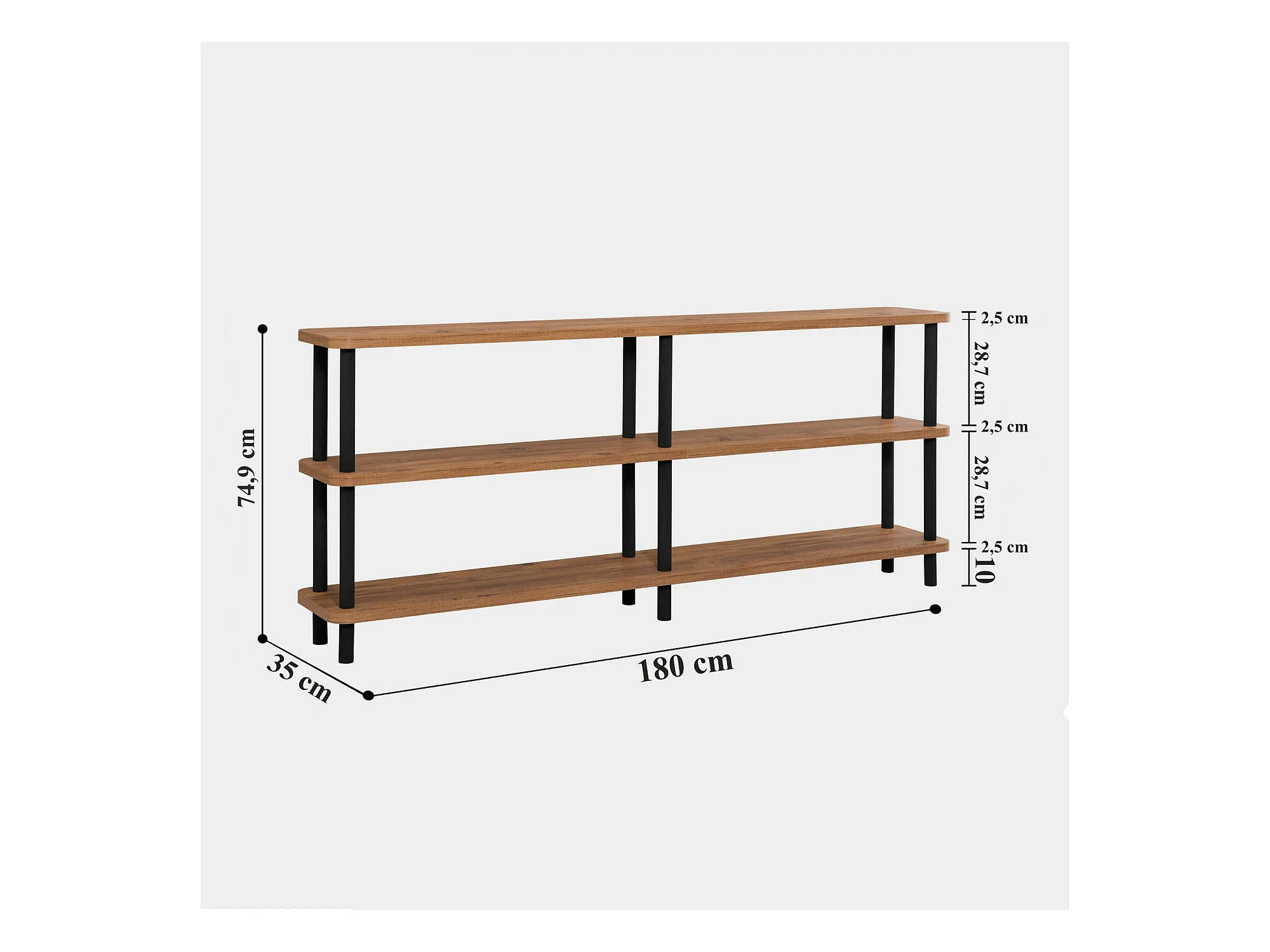 Dmora - Libreria Thuja, 180x35 h75 cm, Nero e Quercia