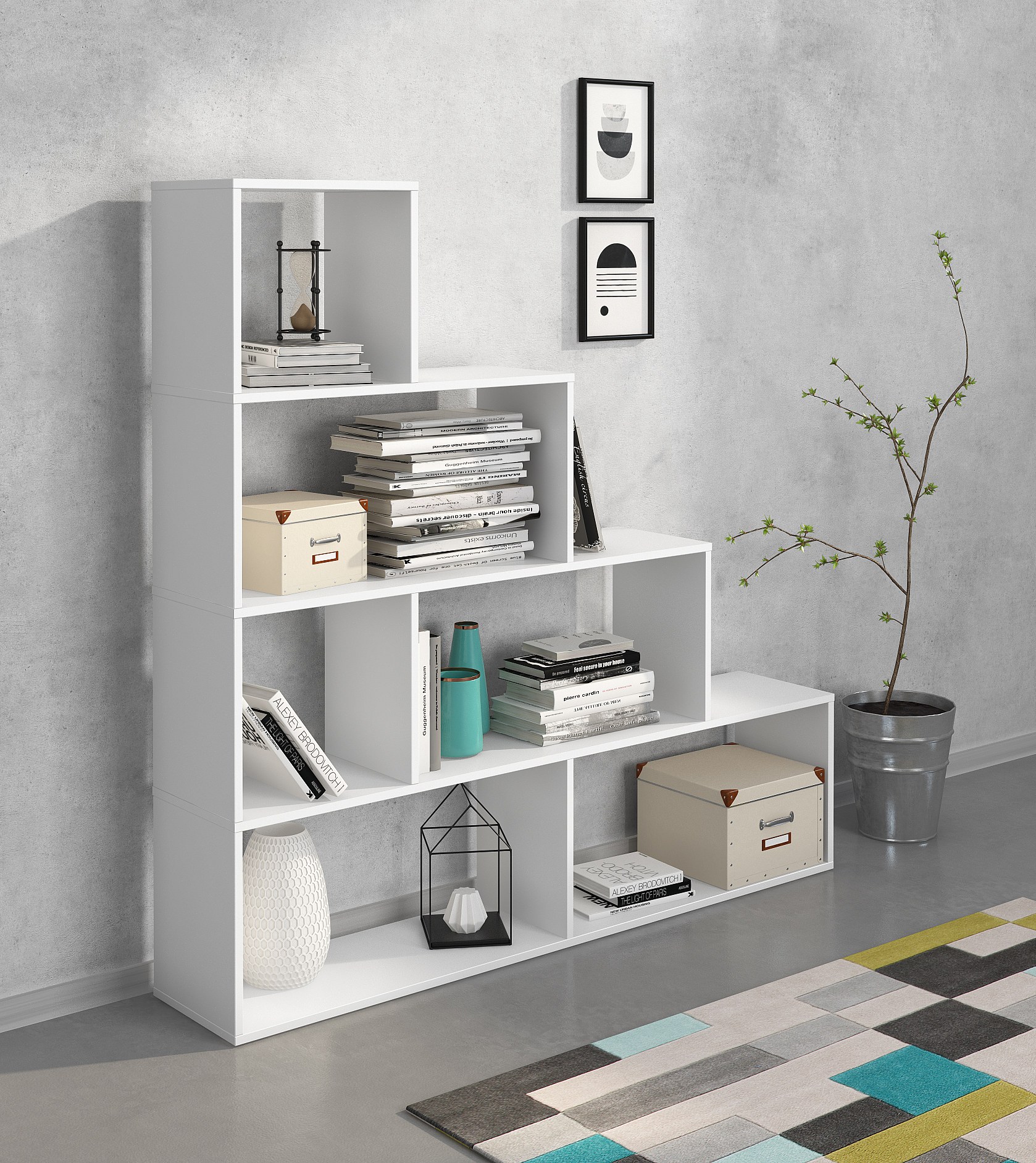 Libreria Design Zig Zag Scaffale Mensola Moderna 6 Vani A Giorni E Ripiani Mobile per Libri per Soggiorno Salotto Camera Studio 143 x 144.9 x 27.9 Cm Bianco