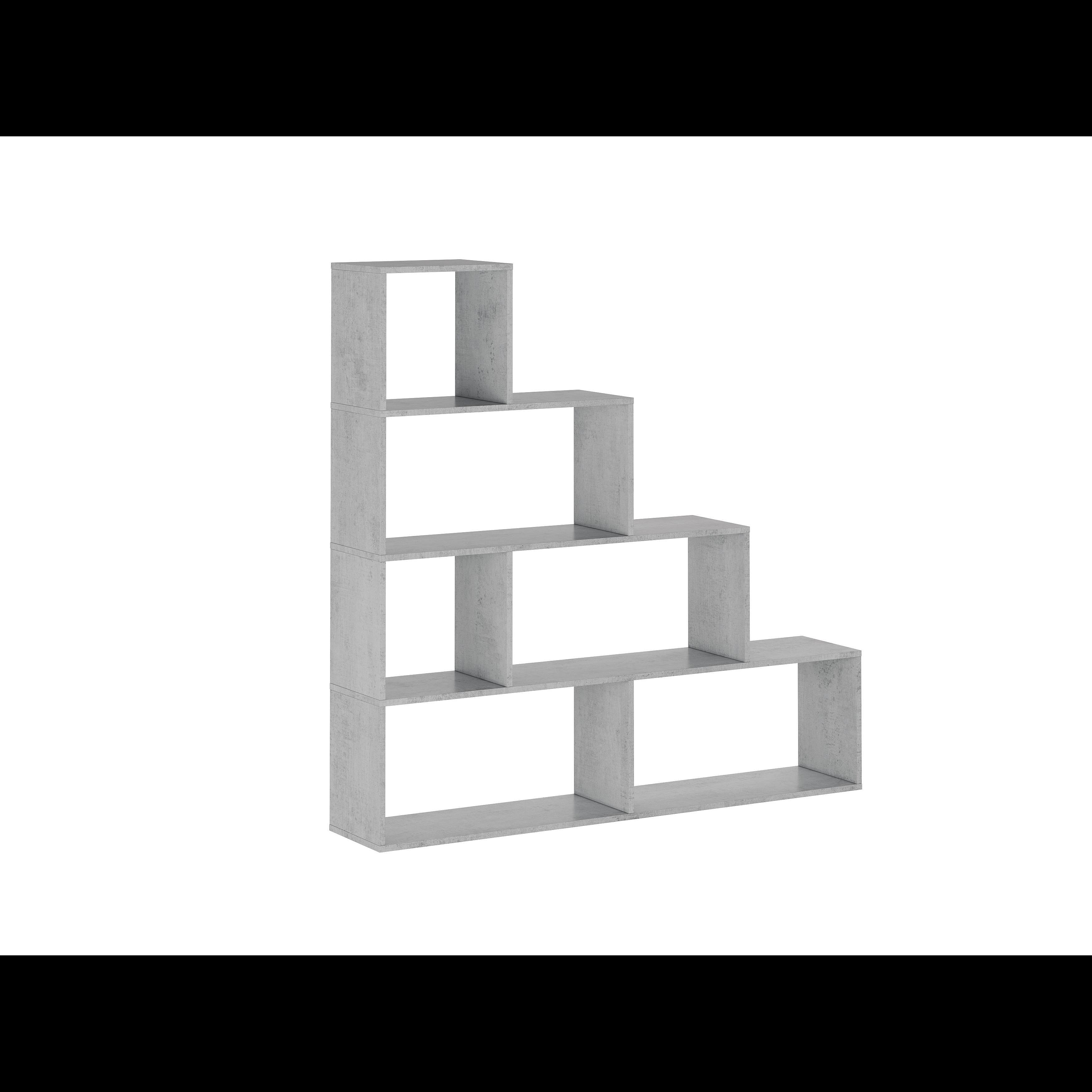 Libreria Design Zig Zag Scaffale Mensola Moderna 6 Vani A Giorni E Ripiani Mobile per Libri per Soggiorno Salotto Camera Studio 143 x 144.9 x 27.9 Cm Grigio Cemento