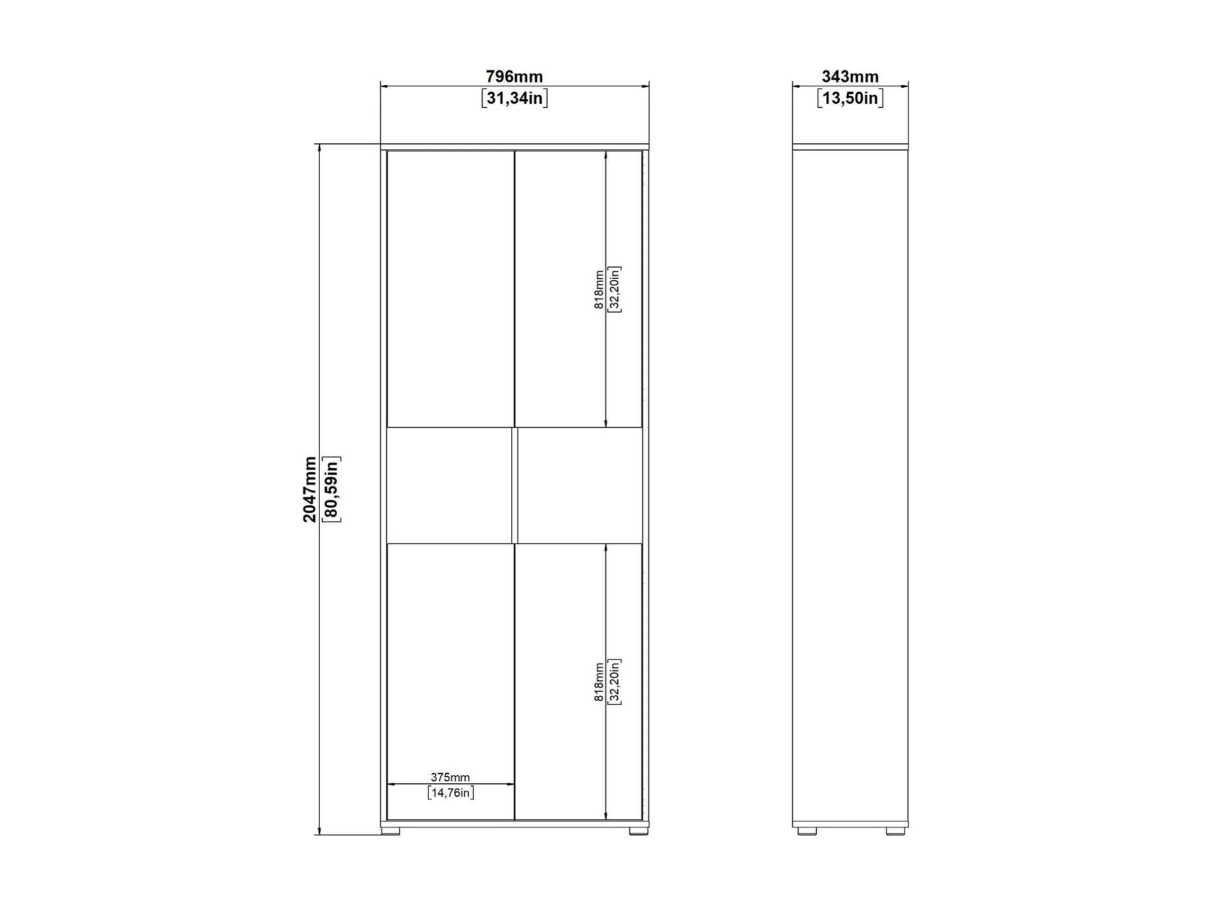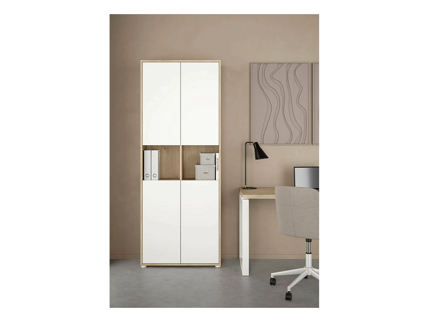 Dmora - Credenza Pierre, 80x34 h205 cm, Rovere e Bianco