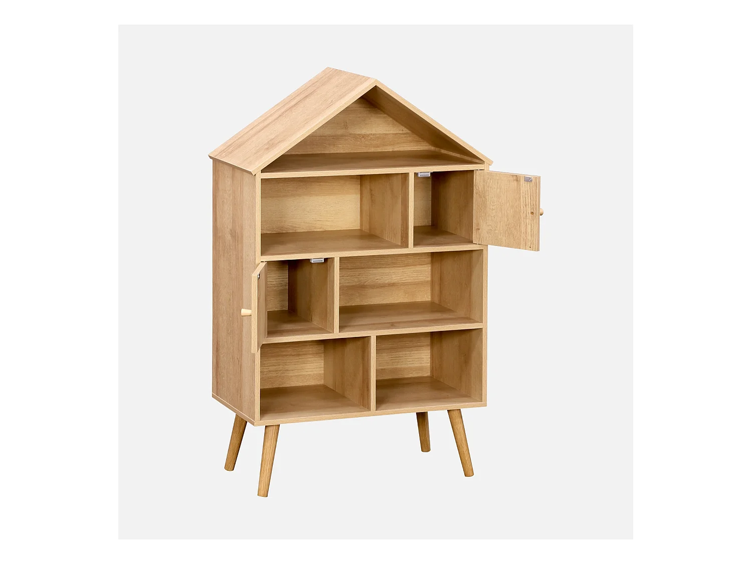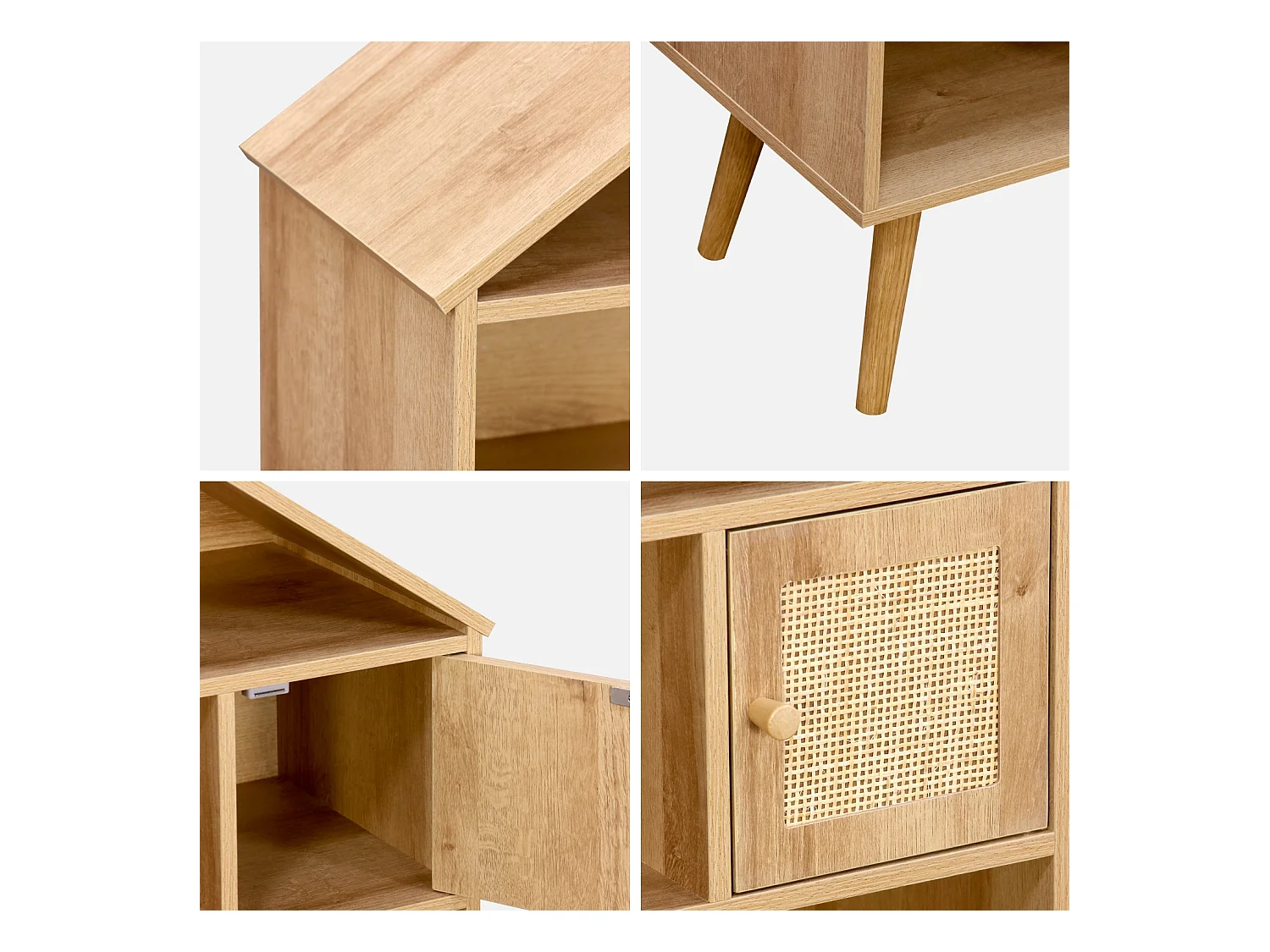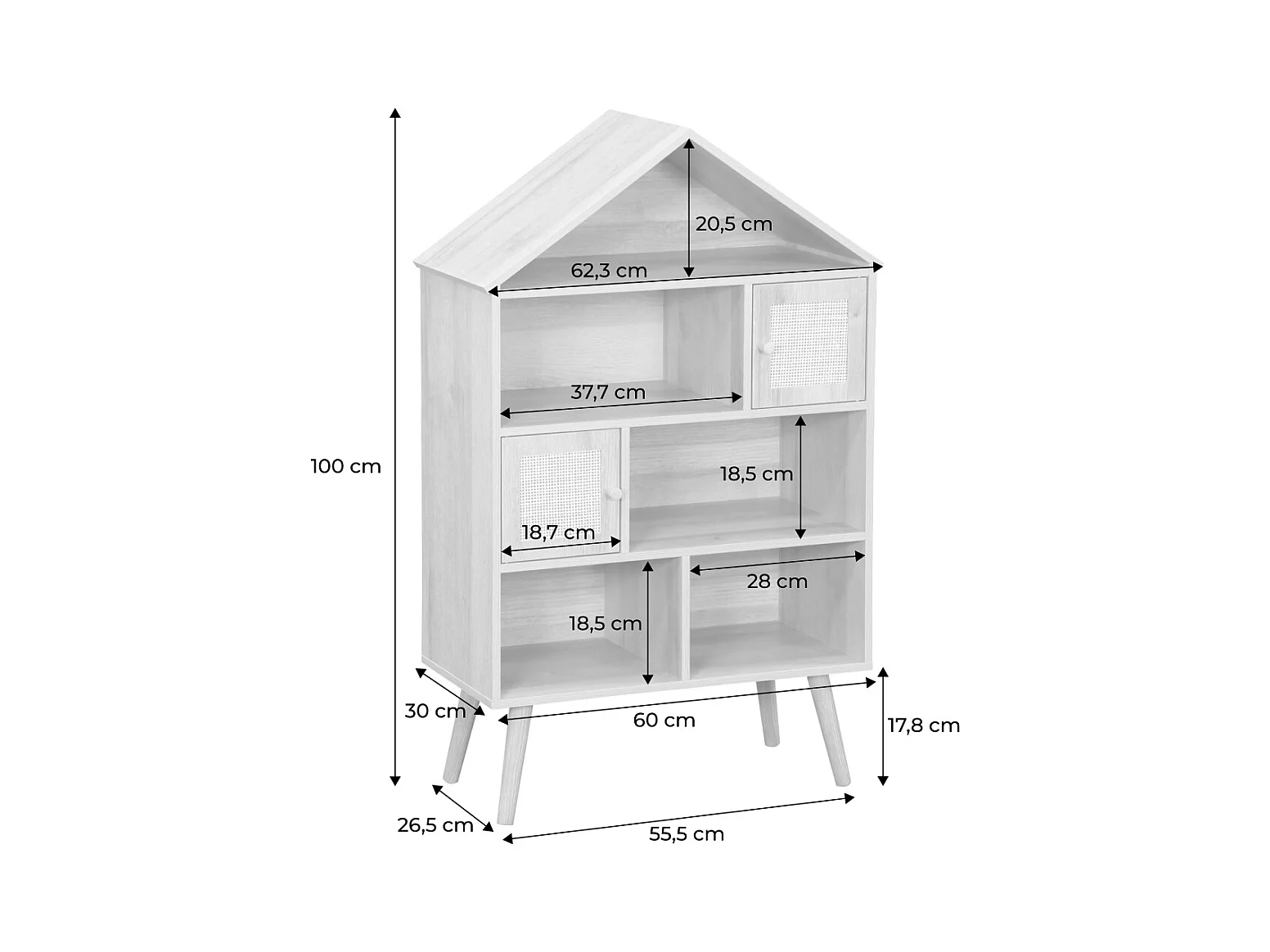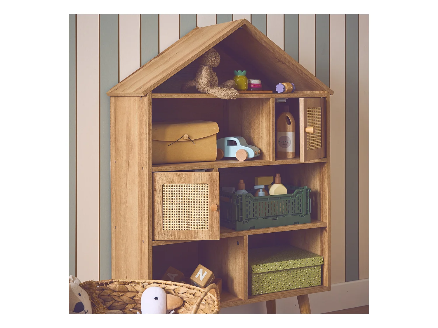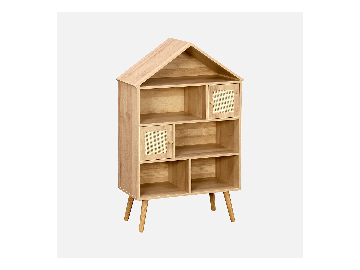 Libreria per bambini effetto legno e canna, 7 scomparti, marrone