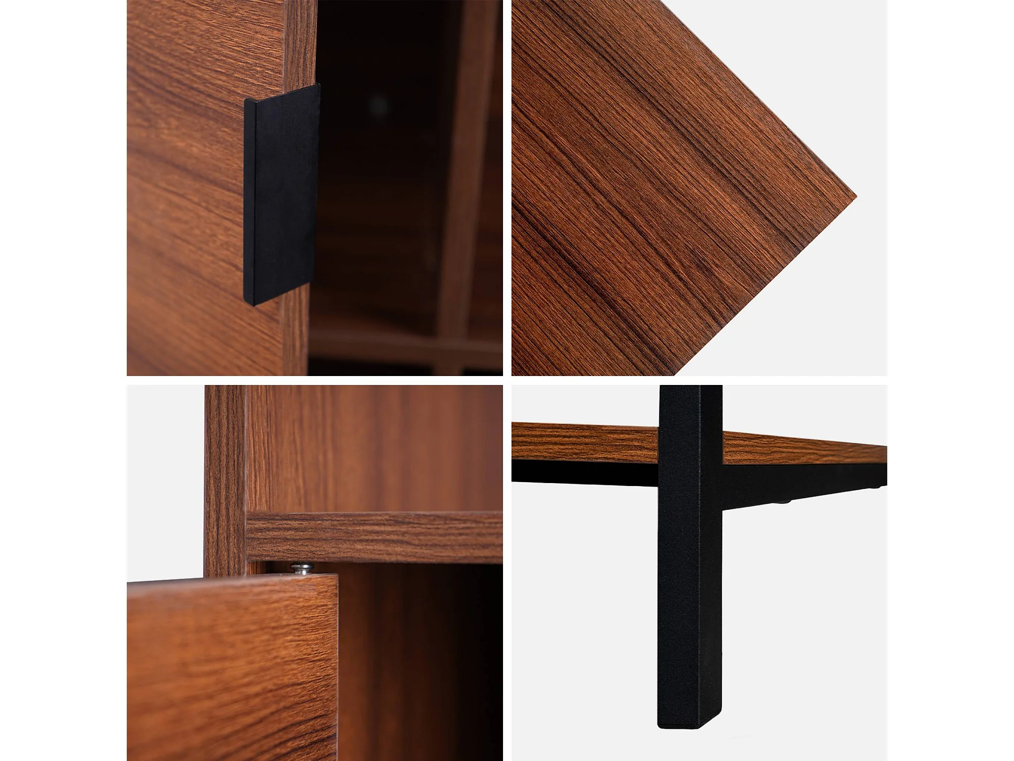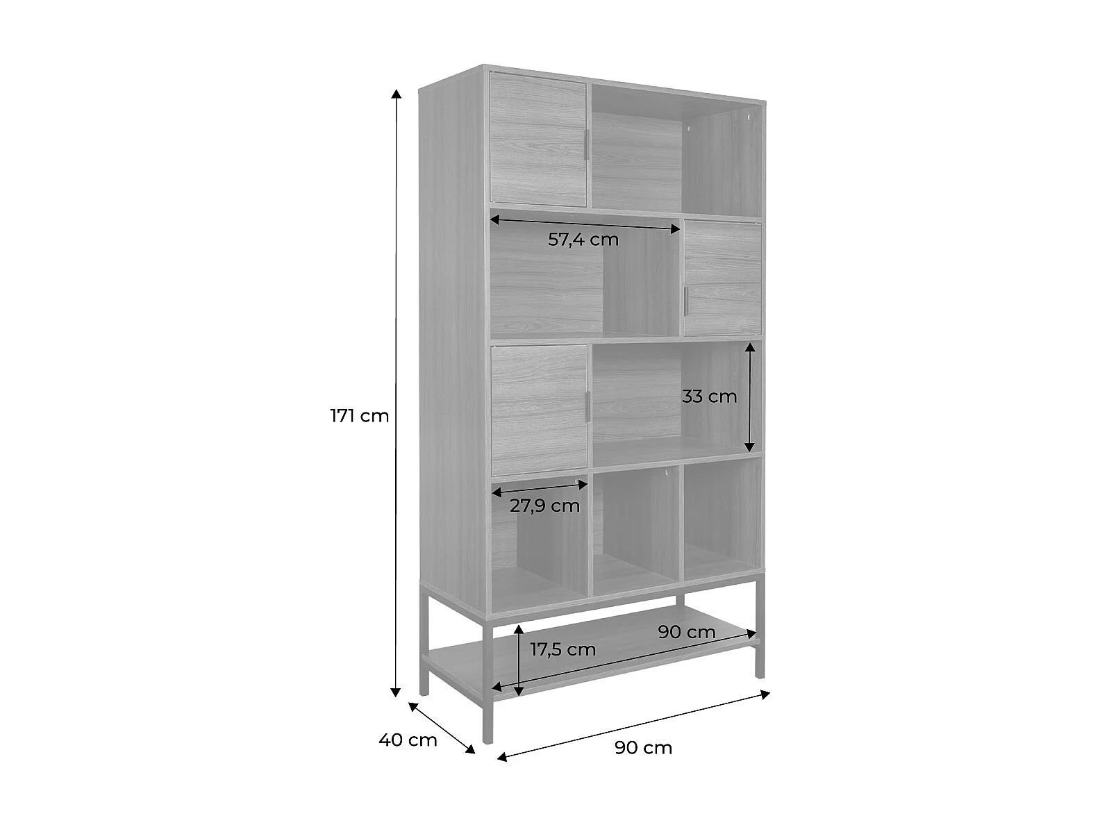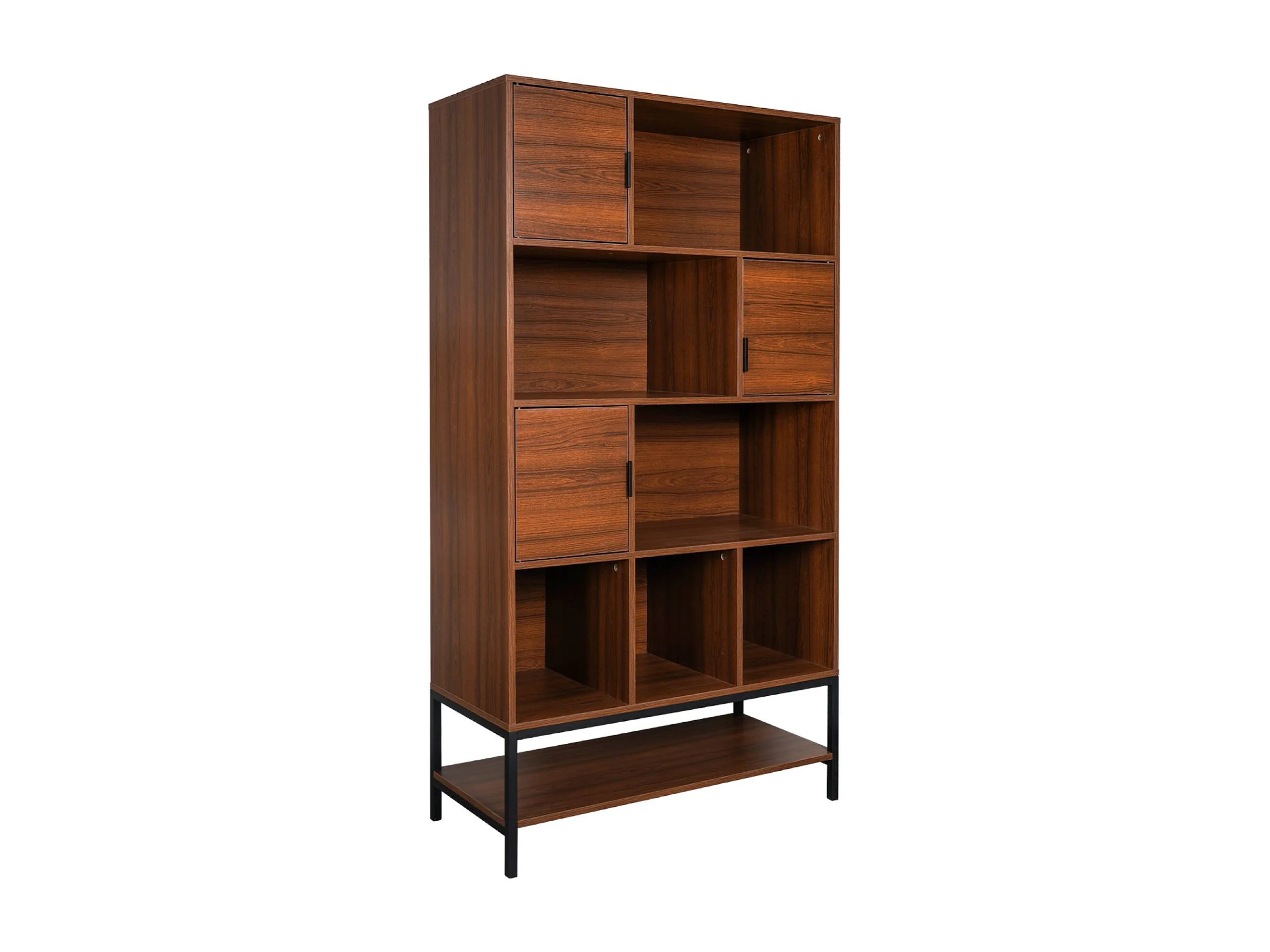 Libreria in legno e metallo nero a 2 ante, marrone naturale