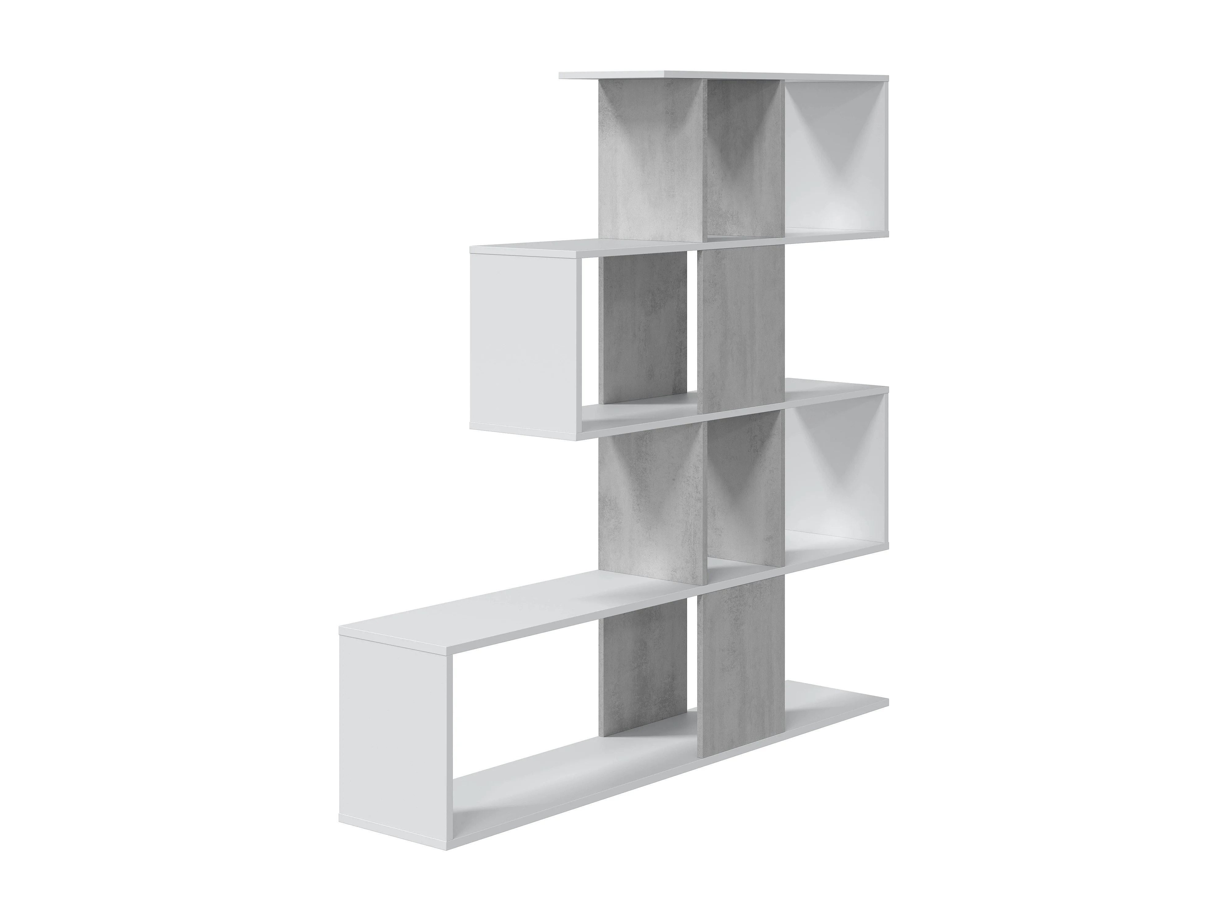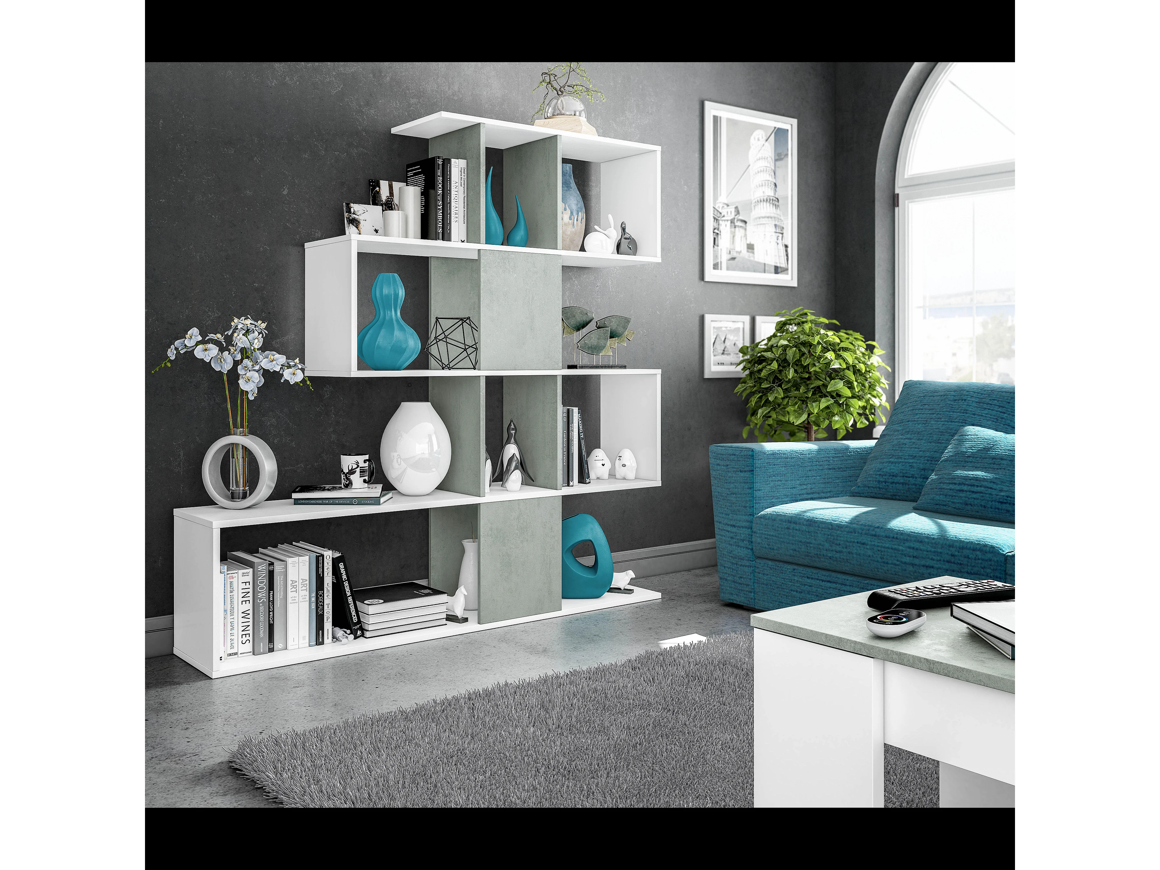 Libreria Elche Design Zig Zag Scaffale Mensola Moderna Mobile per Libri con Ripiani per Soggiorno Salotto 145 x 145 x 29 cm (Colore Bianco e Grigio Cemento)