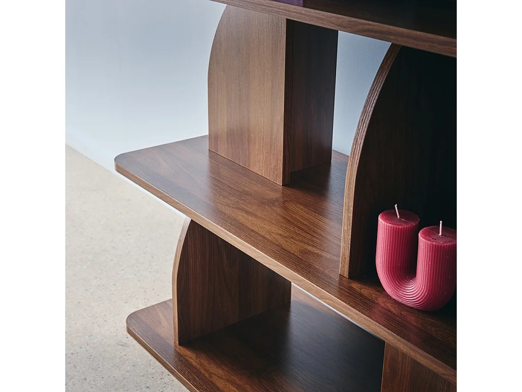 Libreria esotica in legno a 5 livelli, noce