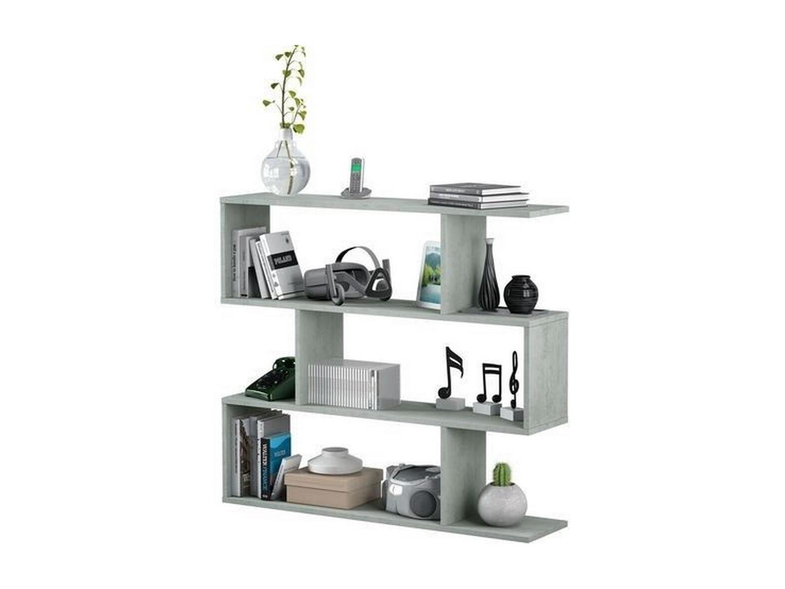 Libreria Friburgo Design Scaffale Mensola Moderna Grigio Cemento Mobile per Libri con Ripiani per Soggiorno Salotto 110 x 97 x 25 cm (Colore Grigio Cemento)