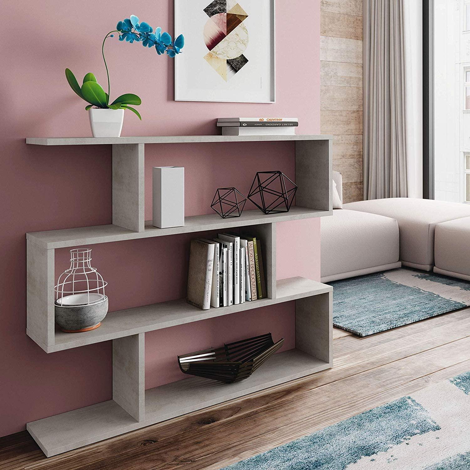 Libreria Design Zig Zag Scaffale Mensola Moderna 6 Vani A Giorni E Ripiani Mobile per Libri per Soggiorno Salotto Camera Studio 143 x 144.9 x 27.9 Cm Grigio Cemento