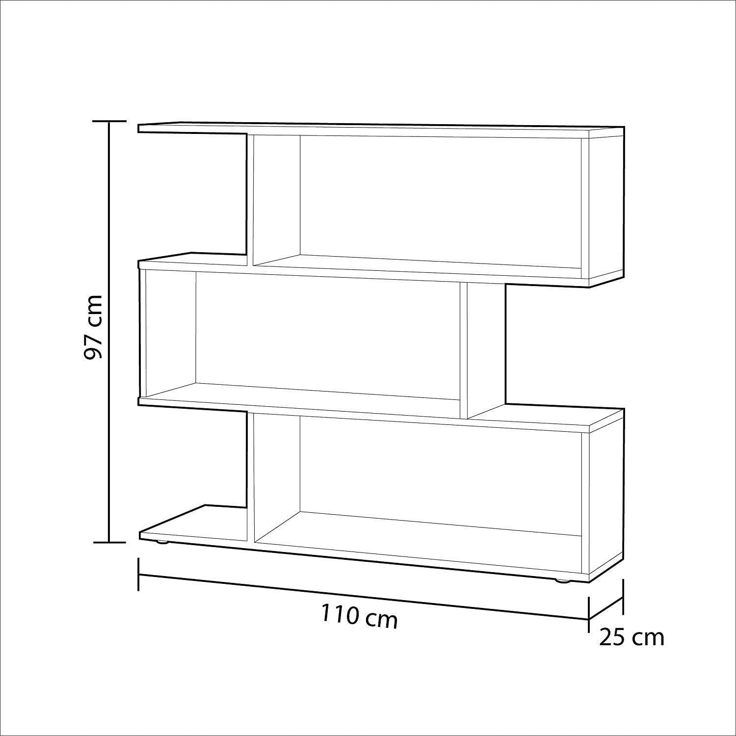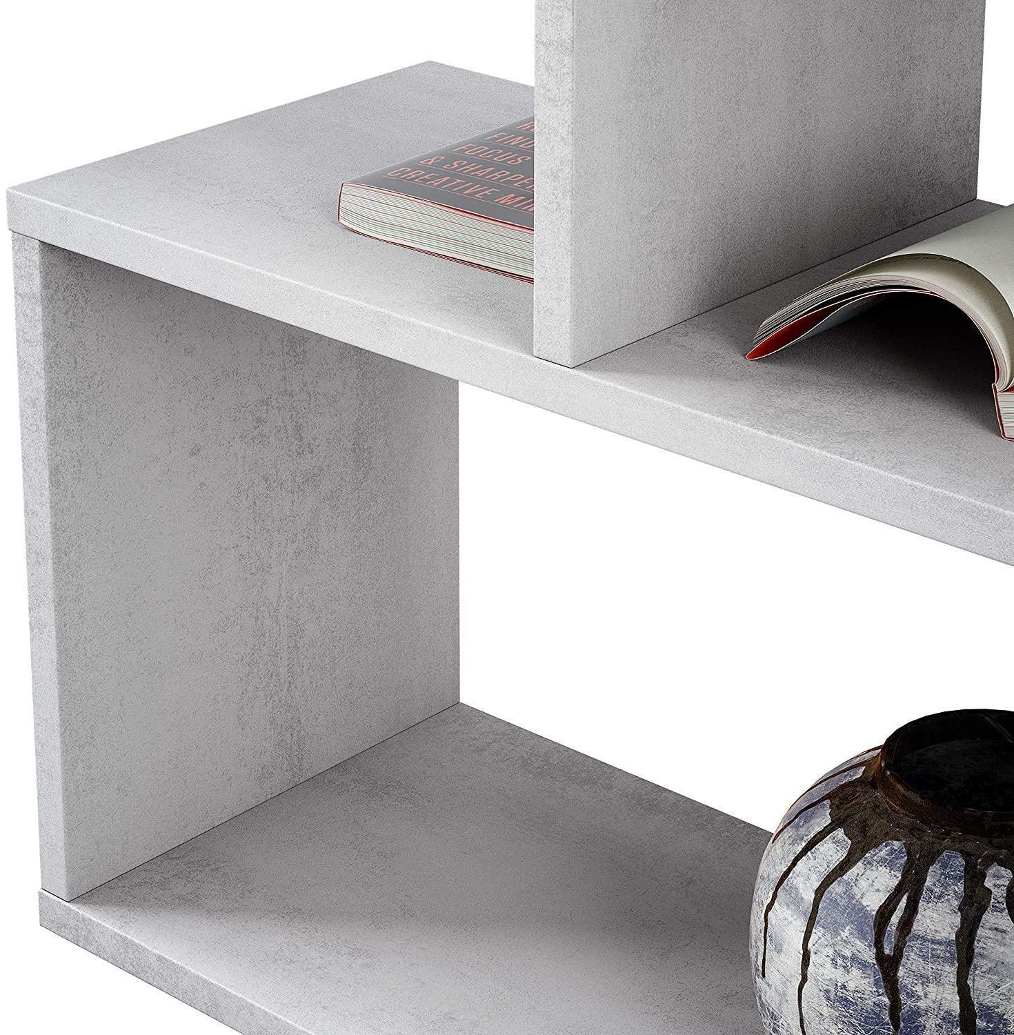 Libreria Elche Design Zig Zag Scaffale Mensola Moderna Mobile per Libri con Ripiani per Soggiorno Salotto 145 x 145 x 29 cm Bianco e Grigio Cemento
