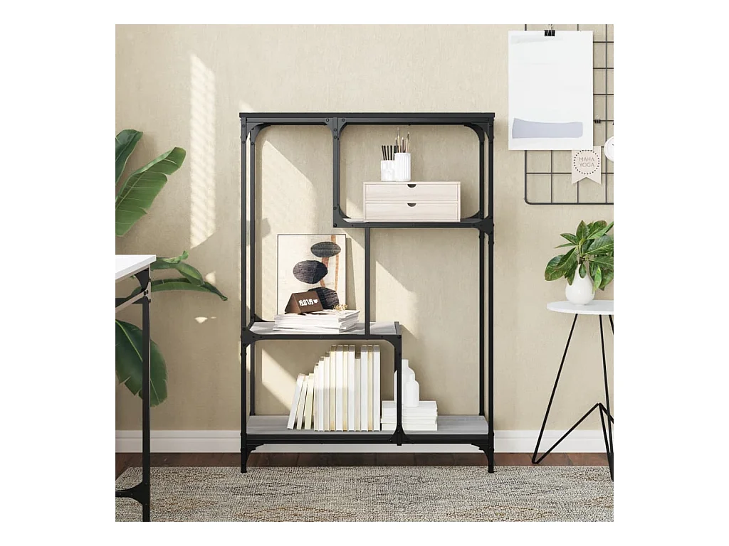 Libreria grigia Sonoma 81x36x115cm in legno ingegnerizzato e acciaio