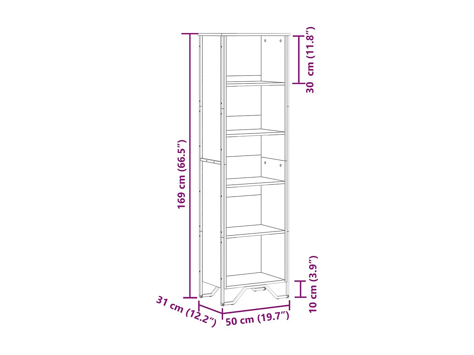 Libreria Grigio Cemento 60x30x189 cm in Legno Multistrato