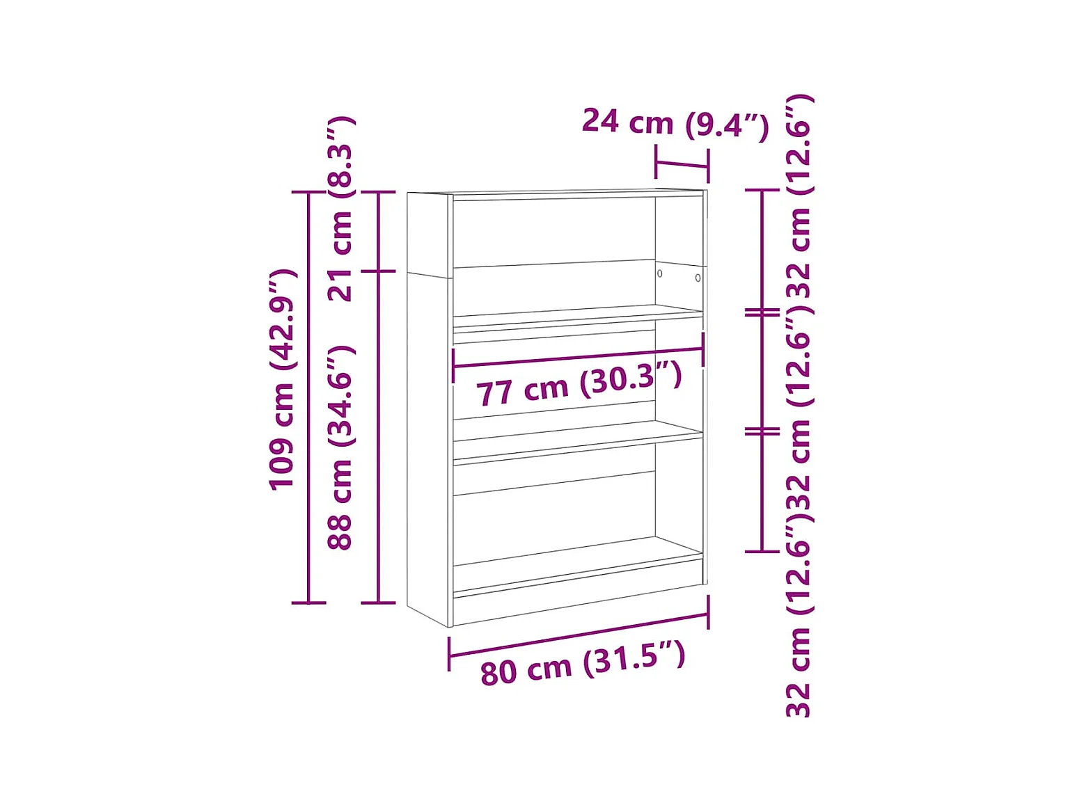 Libreria Grigio Sonoma 80x24x76 cm in Legno Multistrato