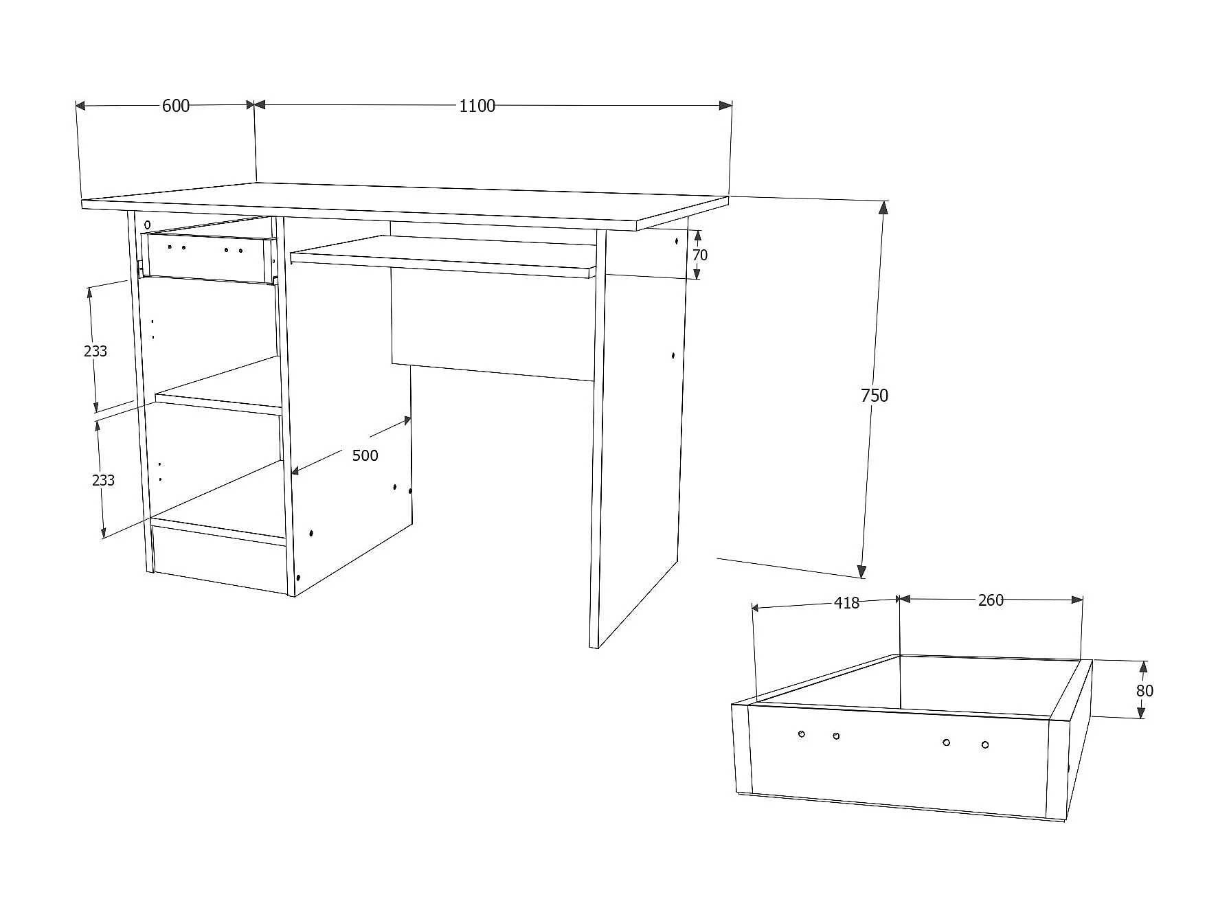 Scrivania angolare con cassetto 115x85cm Luka Bianco | Gambe rovere | Lato sinistro