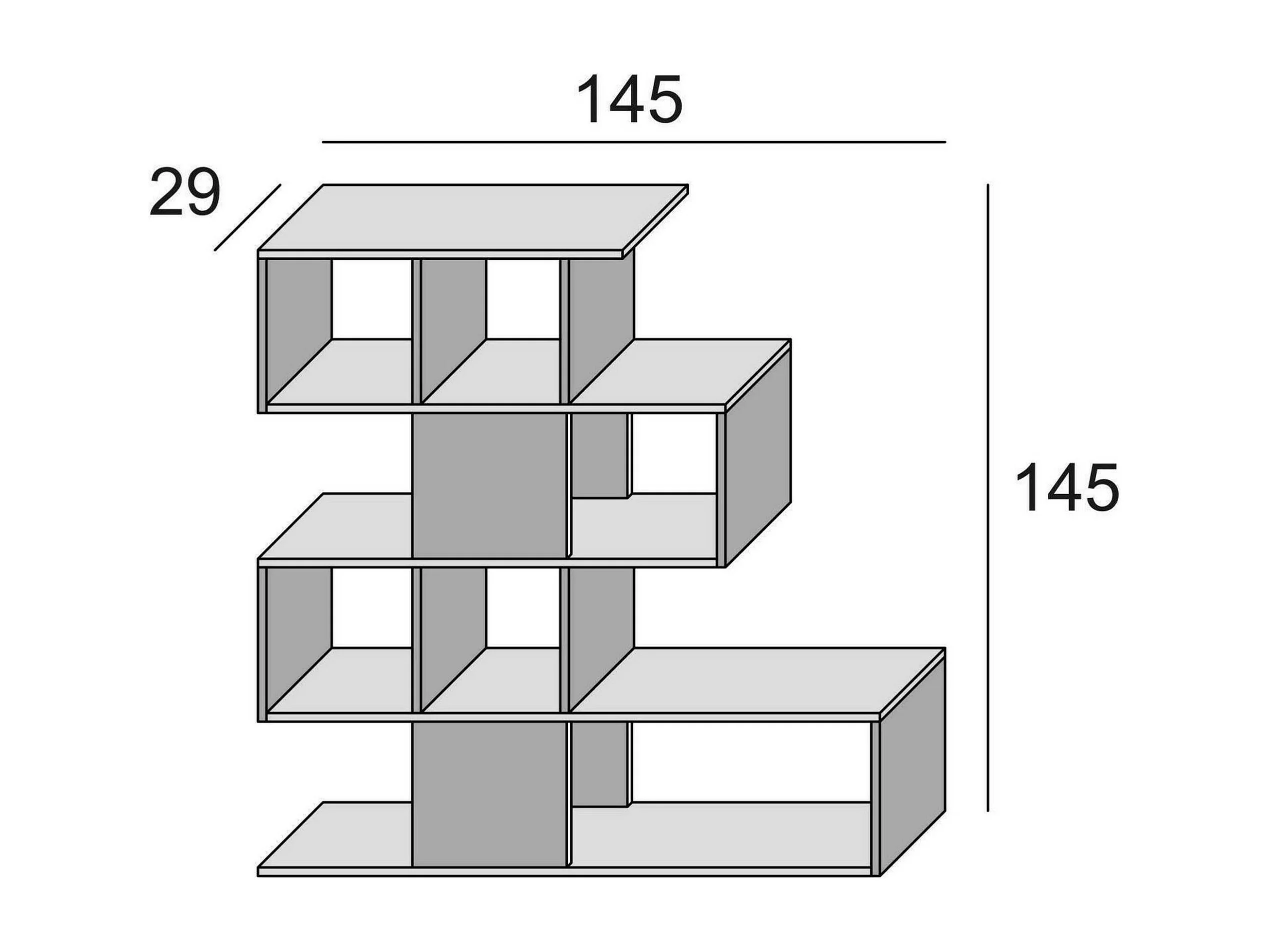 Libreria Hoya, Biblioteca bifacciali a 5 ripiani, Scaffale a zig zag per libri, Mobile da parete con ripiani, 100% Made in Italy, 145x29h145 cm, Bianco e Cemento