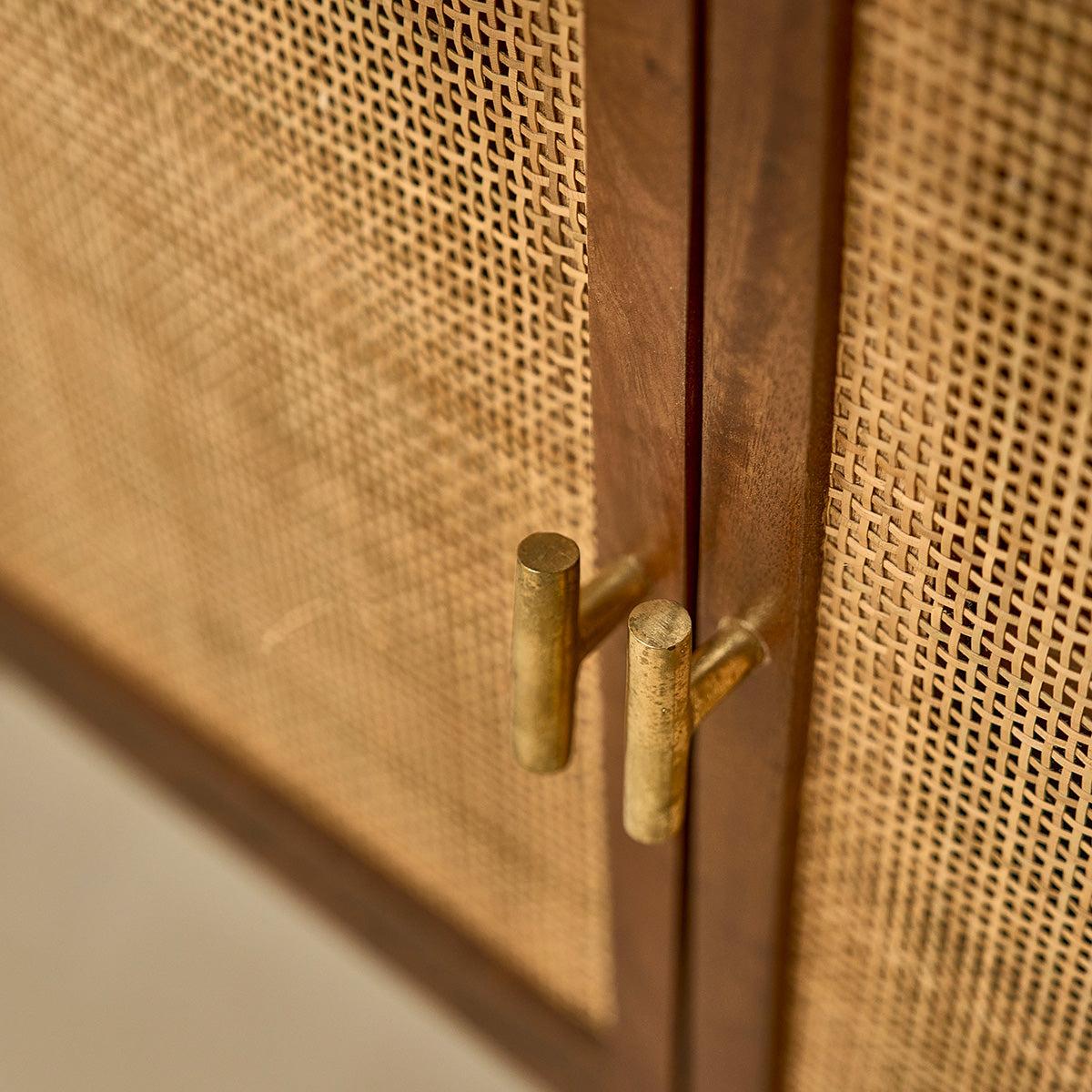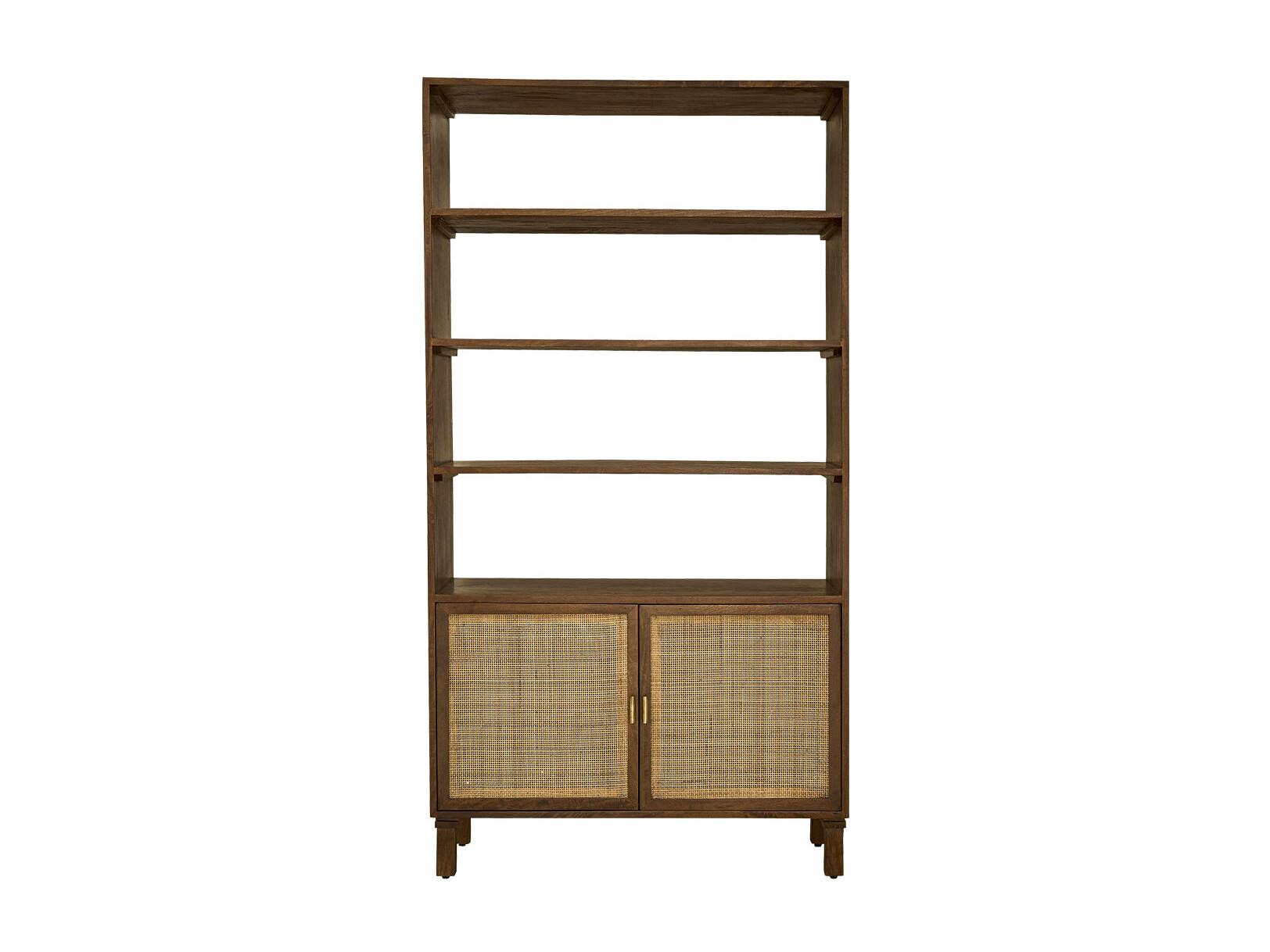 Libreria in mango e vimini finitura noce 170 cm