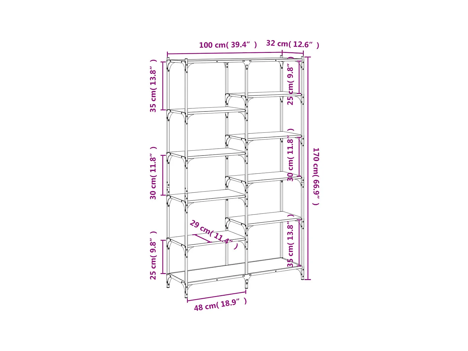 Libreria in rovere Sonoma 100x32x170cm in legno ingegnerizzato e ferro