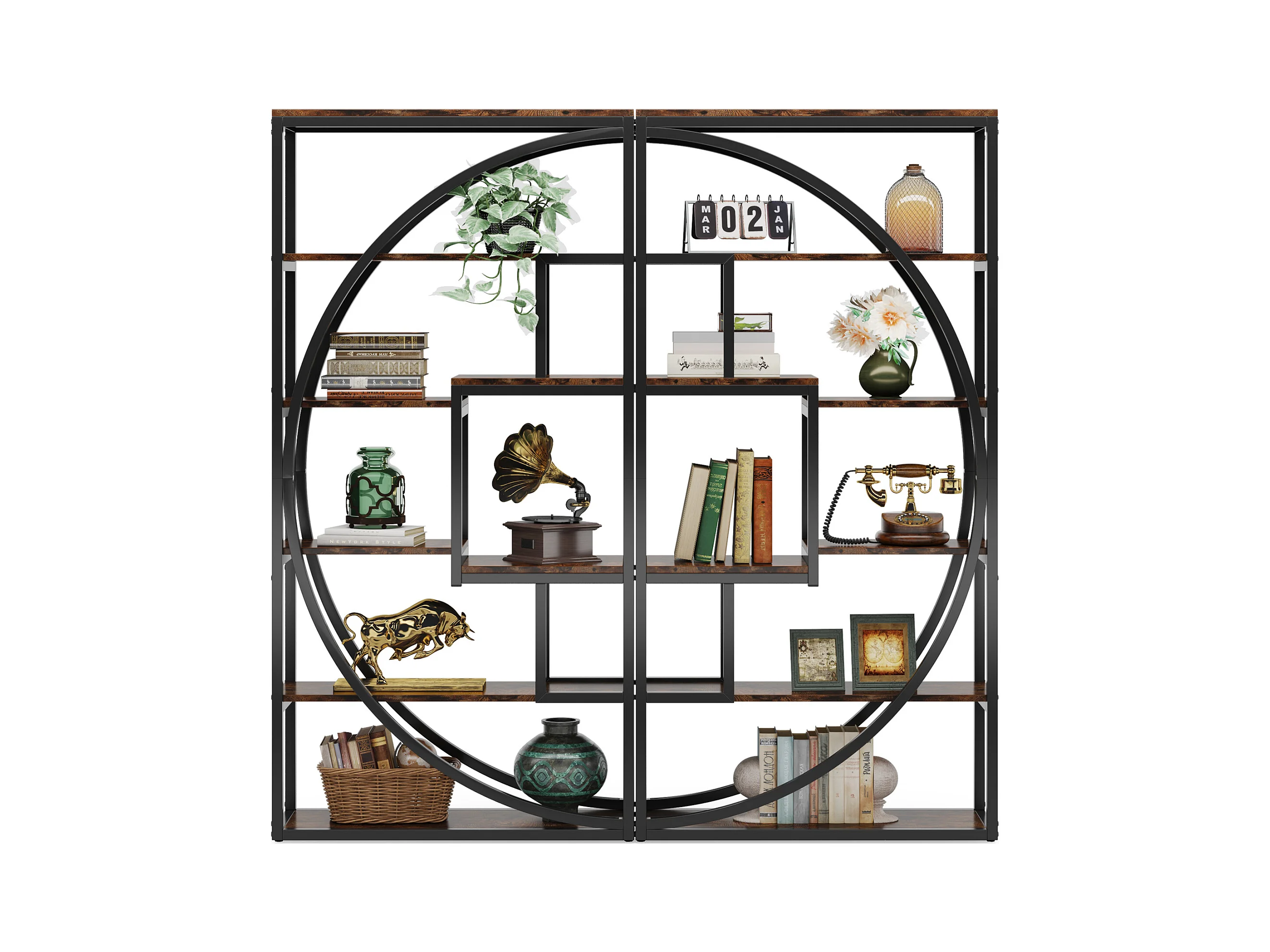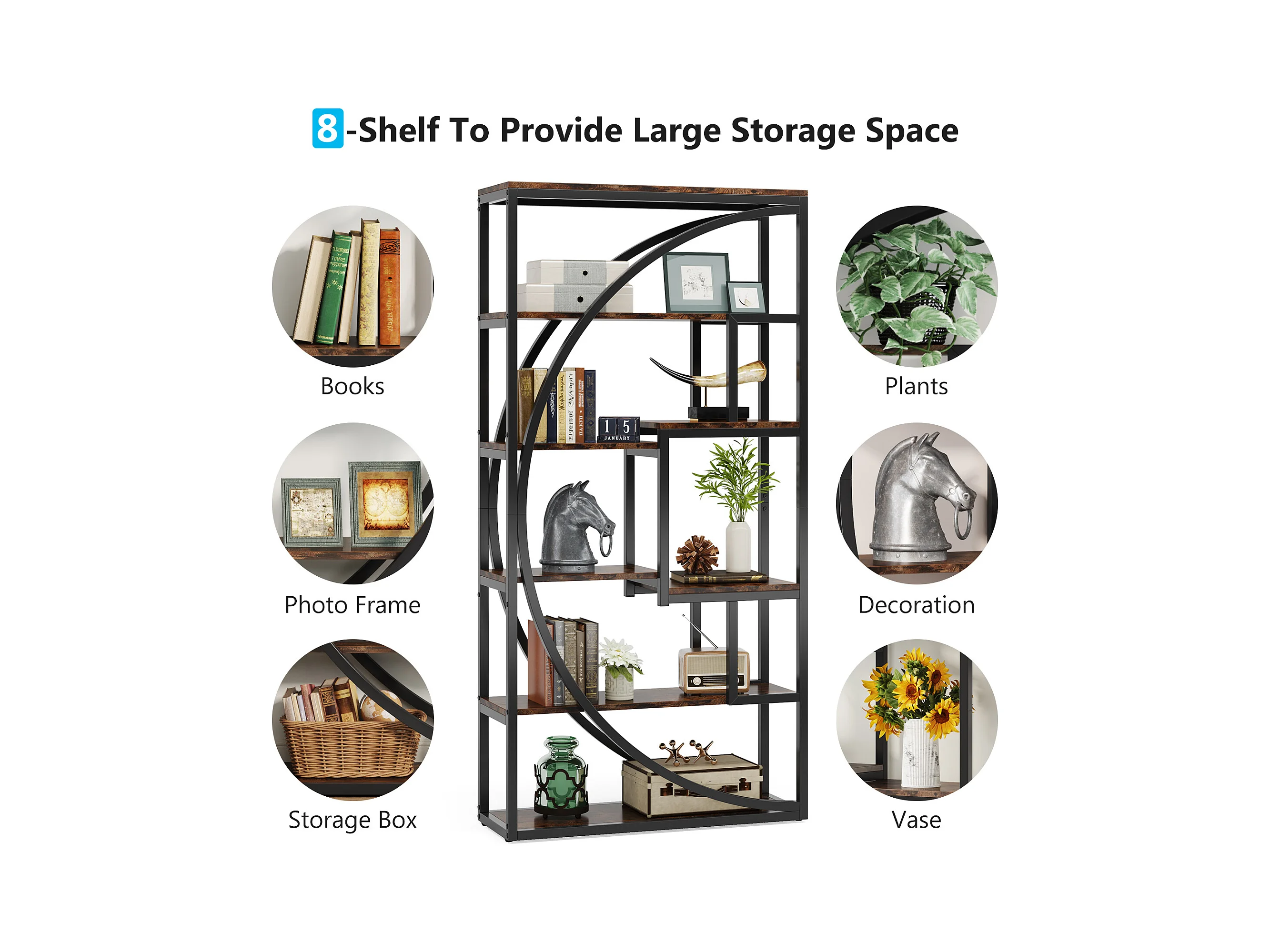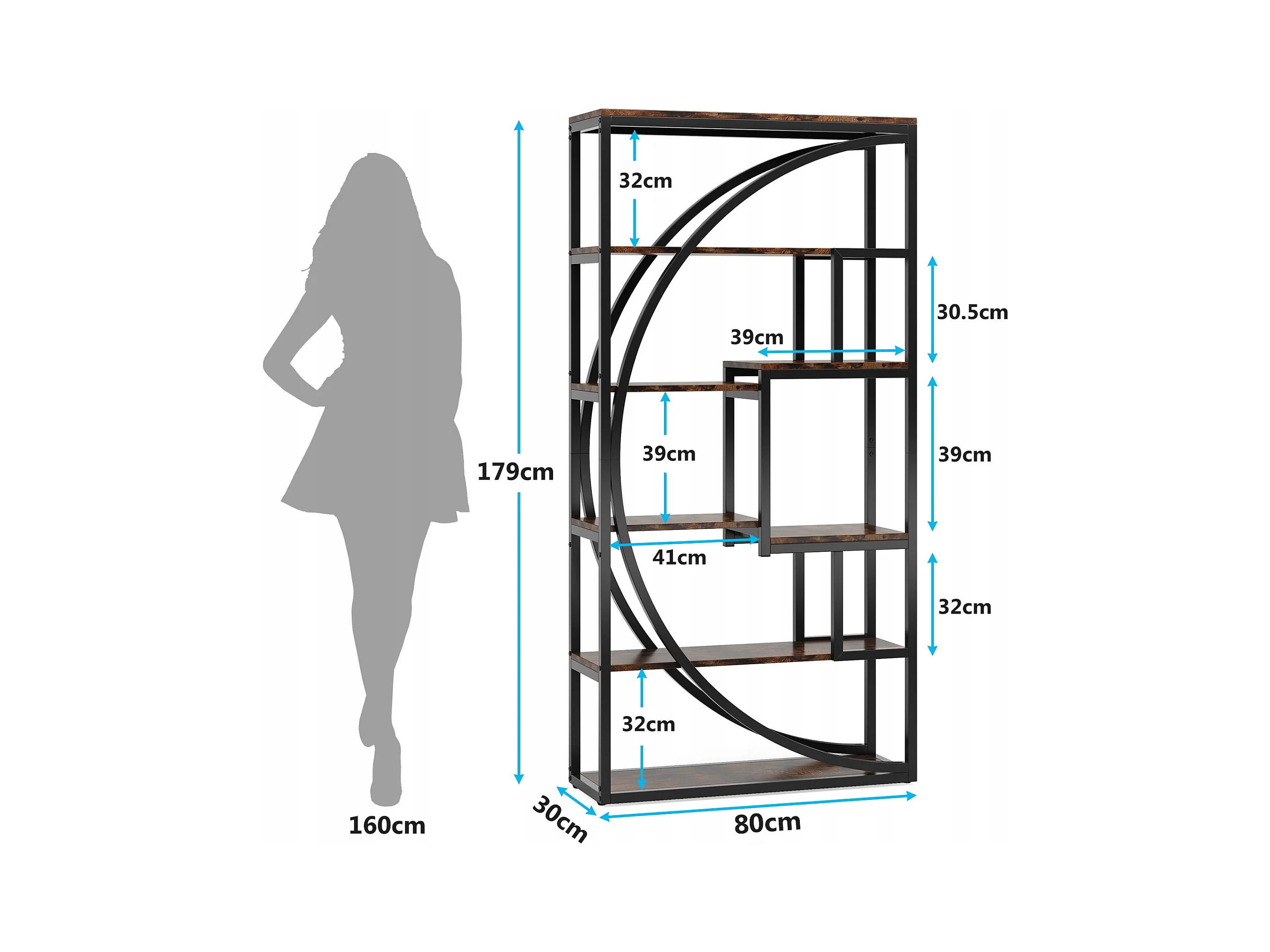 Libreria industriale a 5 ripiani, libreria alta indipendente con 9 ripiani portaoggetti aperti per soggiorno, camera da letto, ufficio domestico