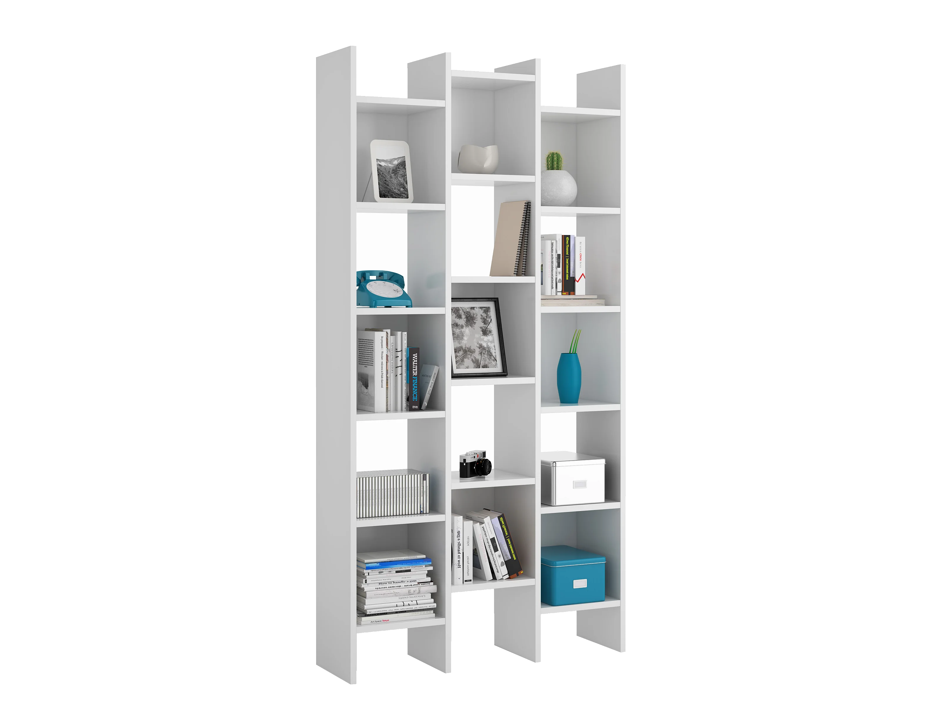 Libreria Design Zig Zag Scaffale Mensola Moderna 6 Vani A Giorni E Ripiani Mobile per Libri per Soggiorno Salotto Camera Studio 143 x 144.9 x 27.9 Cm Bianco