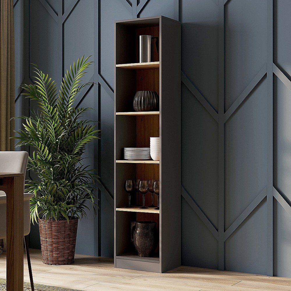 Libreria moderna 60x182x30 cm con ripiani rovere e antracite LBT2